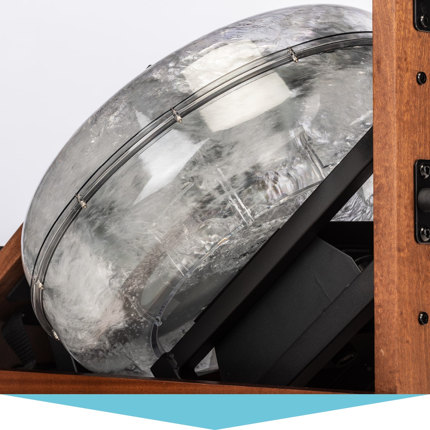 The water brake system inside the water tank provides a realistic rowing experience when training with Nytta. The resistance varies depending on your rowing frequency and the amount of liquid in the tank. The tank can be filled with up to 13 litres – the more water, the higher the resistance.