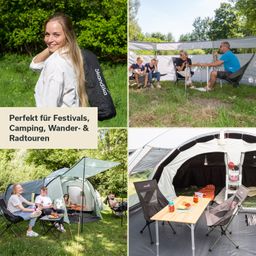 This chair is an absolute must-have for outdoor adventures of all kinds and is particularly suitable for taking with you on the go. Comfortable, uncomplicated, extremely light and super compact, it is not only perfect for camping holidays, festival visits and the garden or balcony at home, but is also ideal for hiking and cycling tours. It fits into the smallest car boot and can even be easily carried by the children - the perfect "little" all-rounder!
