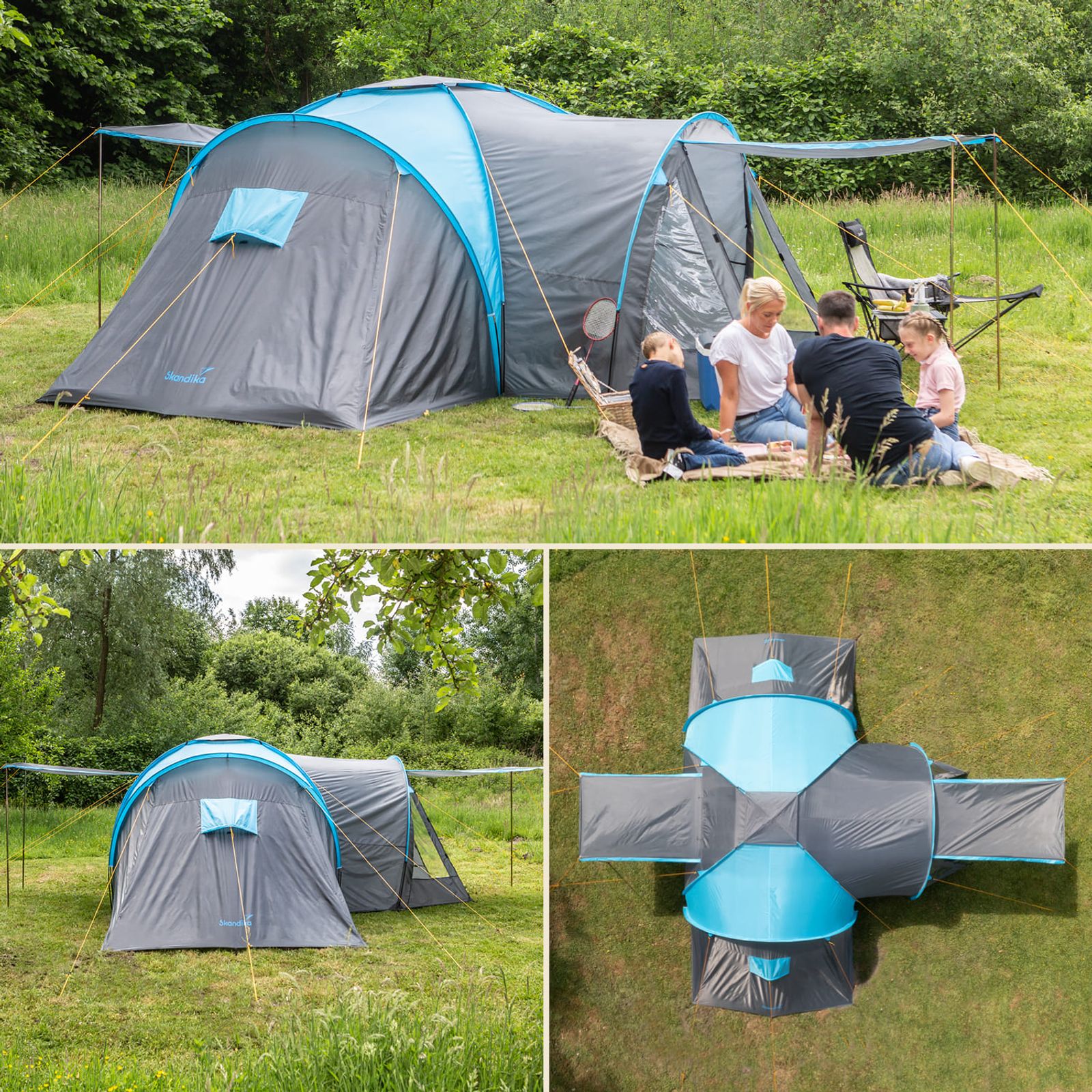 Das himmelblaue Zelt Hammerfest ist nach der nördlichsten Stadt der Welt benannt. Es macht aber nicht nur im hohen Norden, sondern auch hier zulande auf dem Campingplatz oder beim Festivalbesuch eine gute Figur! Das Besondere an dem Hammerfest 6 Plus im Vergleich zum Hammerfest 6 ist, wie der Name schon sagt, der zusätzlich gewonnene Platz durch die Vergrößerung des Wohnraums. Für ausreichende Privatsphäre durch zwei gegenüberliegende Schlafkabinen ist ebenfalls gesorgt.
