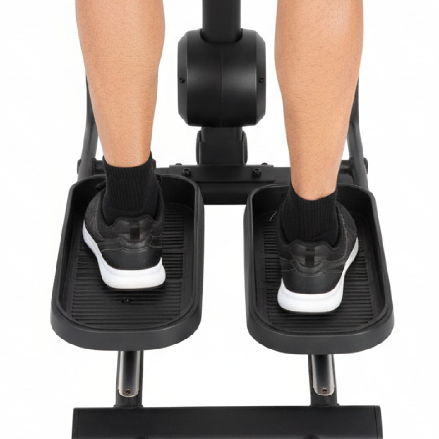 Mit einer Schrittlänge von 48 cm, einer Pedalgröße von 38 × 19 cm und einer maximalen Pedalhöhe von 44 cm bietet der Ellipsentrainer optimalen Komfort für verschiedene Körpergrößen bis zu 200 cm.