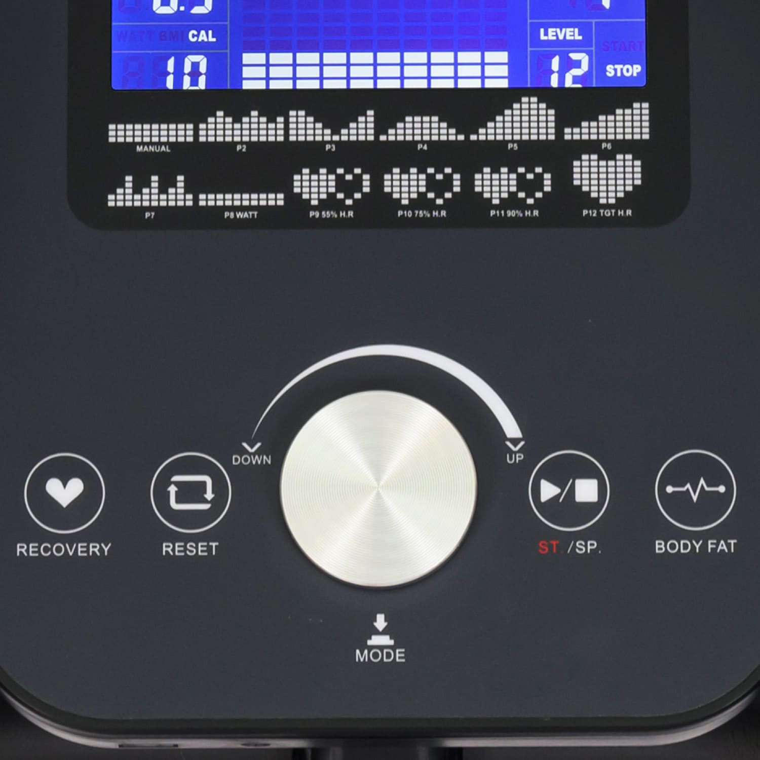 32 elektrisch einstellbare Widerstandsstufen, bequem über einen Drehknopf an der Konsole regulierbar, ermöglichen eine genaue Anpassung der Trainingsintensität an individuelle Bedürfnisse.