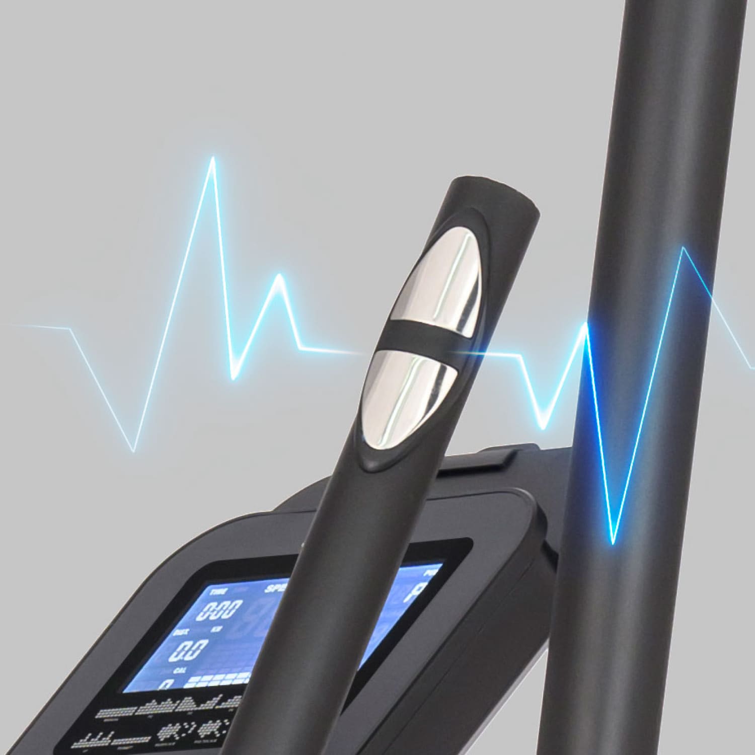 Die in den Handgriffen integrierten Pulssensoren ermöglichen eine bequeme und kontinuierliche Überwachung der Herzfrequenz während des Trainings, was eine präzise Steuerung der Trainingsintensität erlaubt.