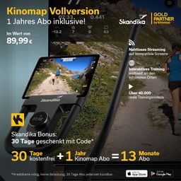 Dieses Bundle beinhaltet ein Jahresabo für Kinomap im Wert von 89,99 € und zusätzlich einen Code, um die Vollversion der App weitere 30 Tage kostenfrei zu testen – für insgesamt 13 Monate Live-Videos, Coachings und virtuelle Trainingsvideos, die jede Trainingseinheit auf ein neues Level bringen und Workouts an den schönsten Orten der Welt ermöglichen.
