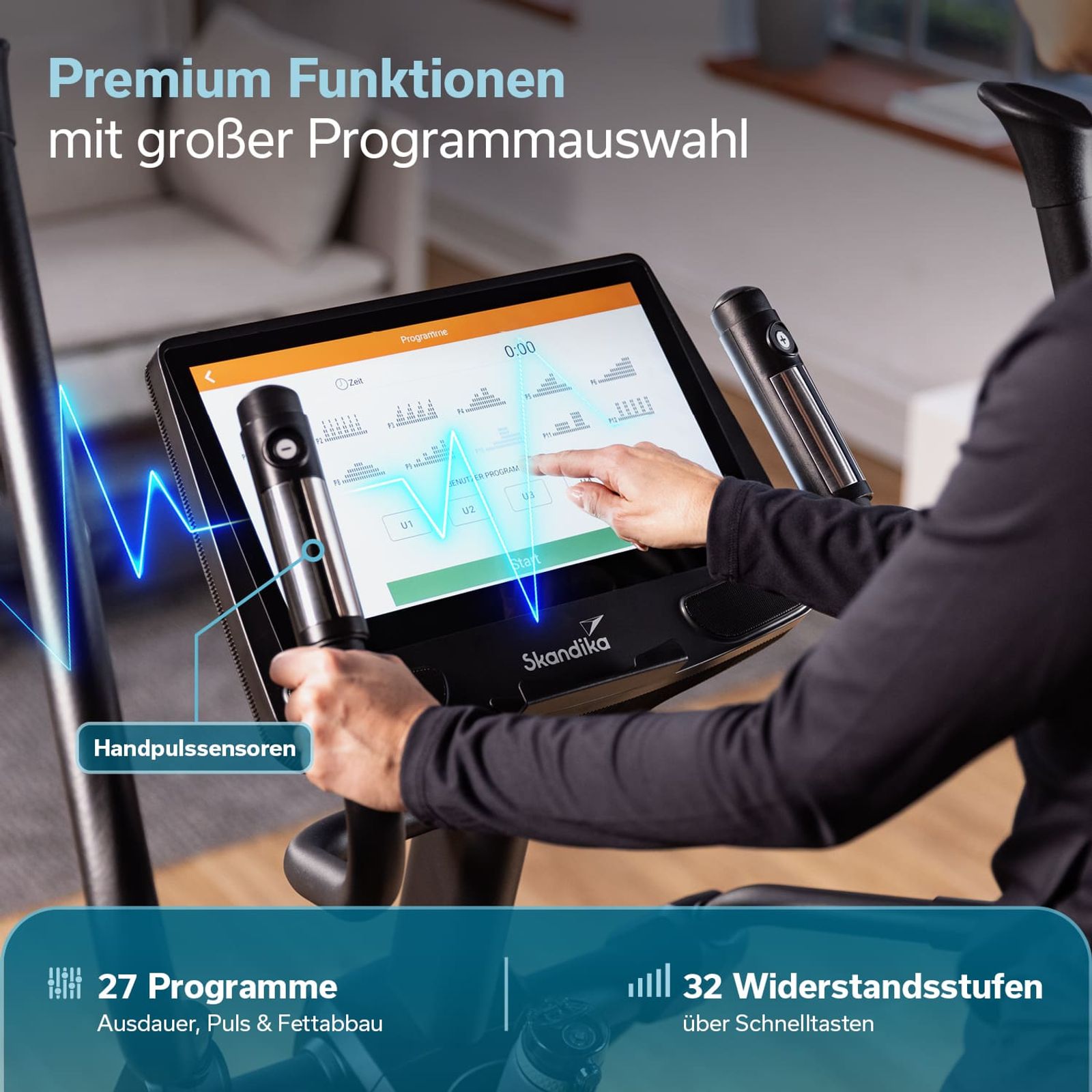 - Großer Touchscreen für Entertainment während des Trainings