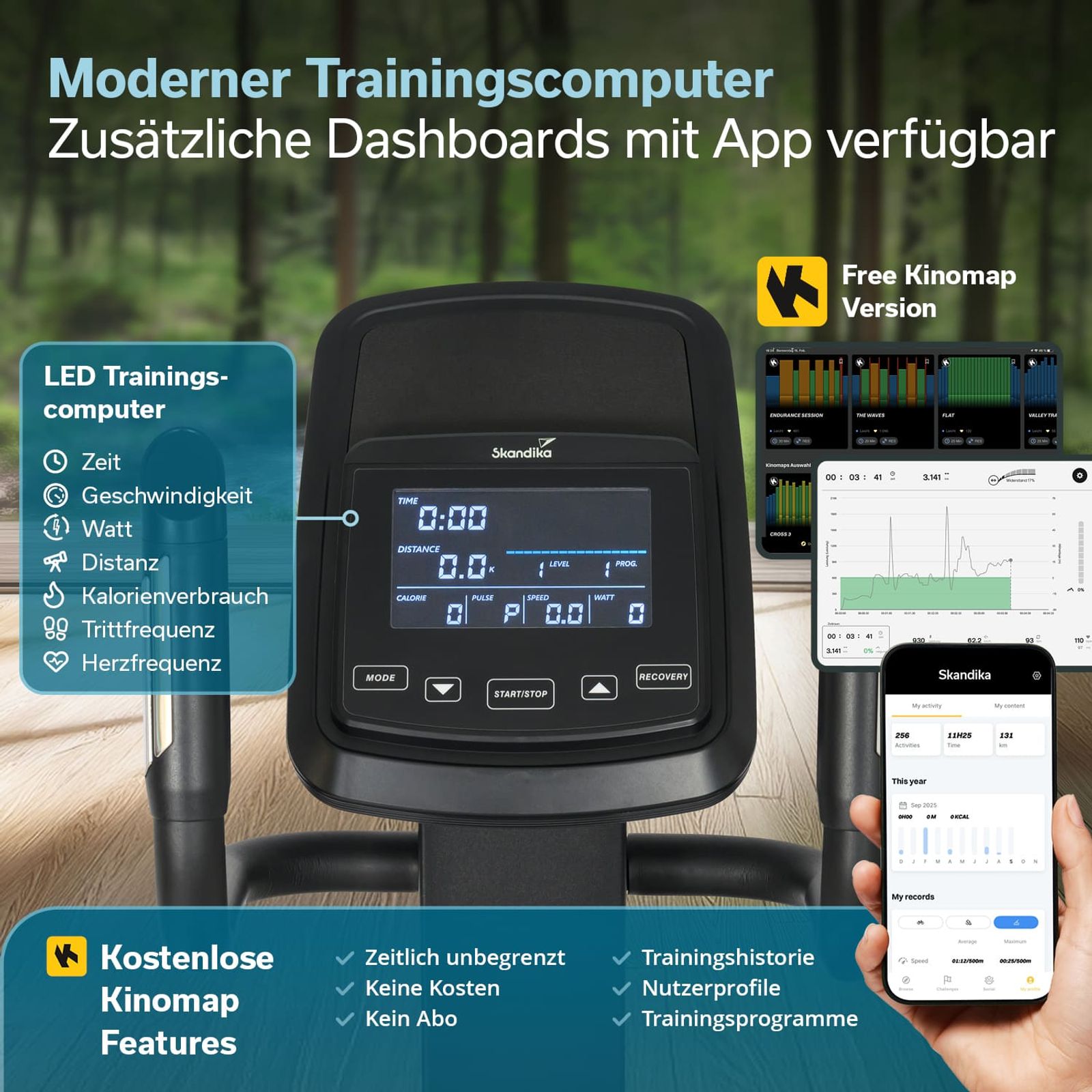 - Bluetooth-Verbindung und 60 Tage kostenloses Kinomap-Abo