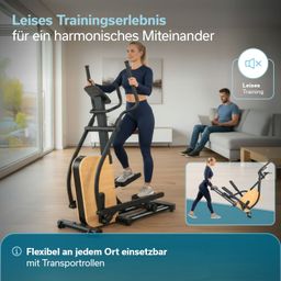 Das innovative Doppellaufschienensystem unterstützt die flüssige und leise Bewegung auf dem Crosstrainer, sodass niemand durch laute Geräusche gestört wird.