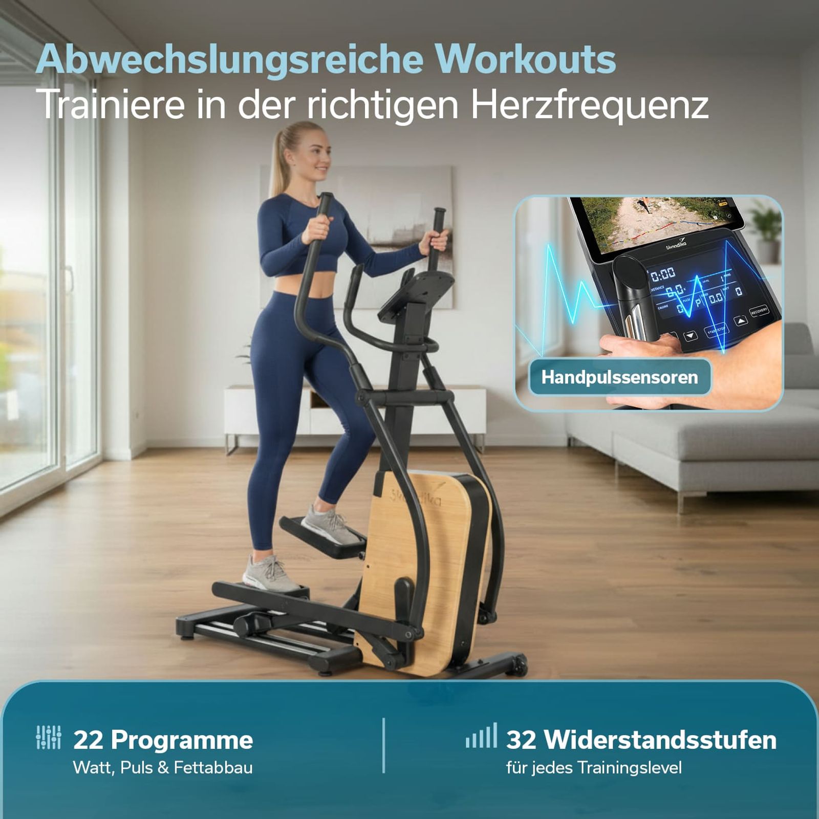 Ellipsentrainer mit 32 Widerstandsstufen und 22 Trainingsprogrammen