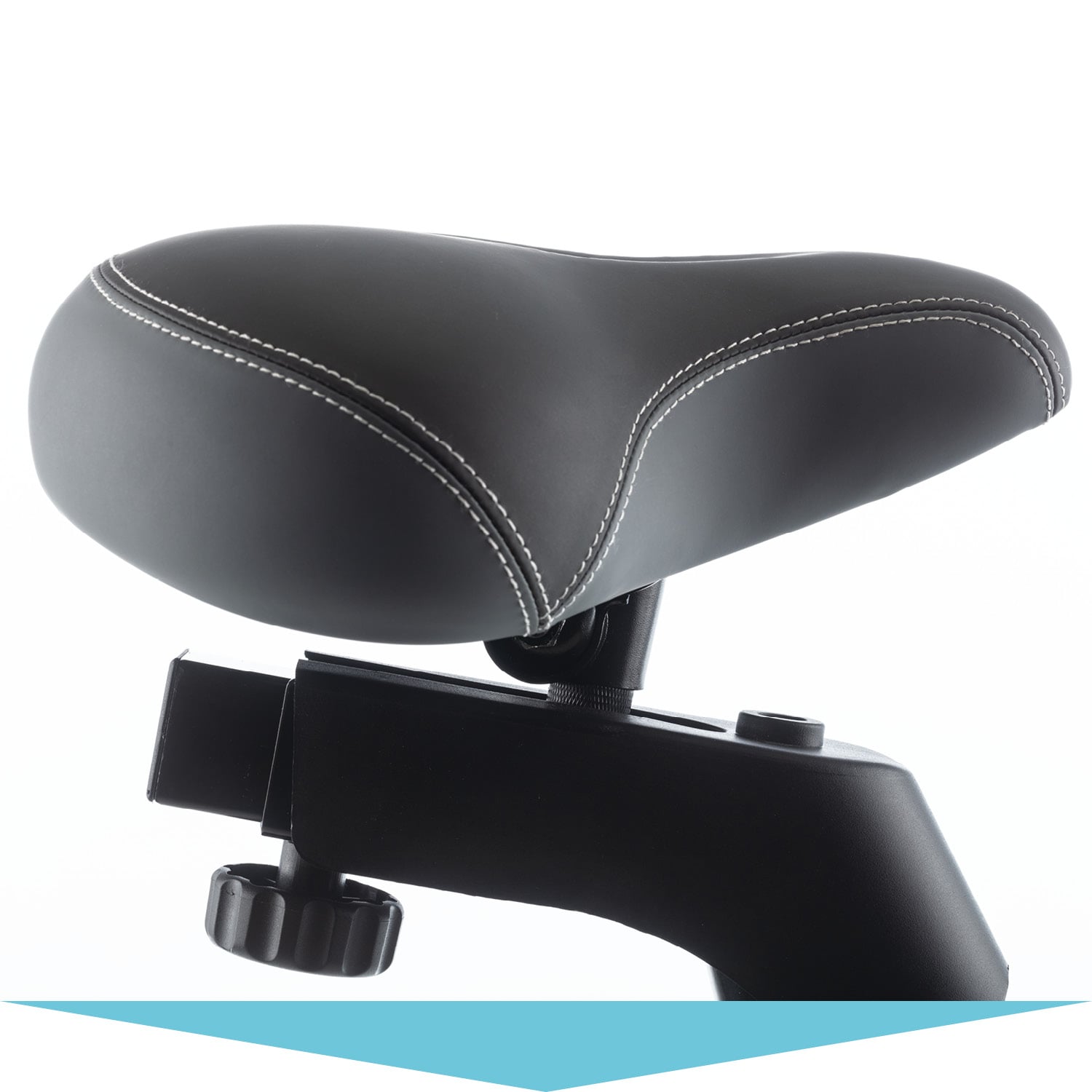 Der Sattel ist sowohl vertikal in der Sitzhöhe als auch horizontal in der Sitzposition verstellbar. Zusammen mit der änderbaren Lenkerneigung kann damit jeder Benutzer eine angenehme und individuell auf ihn abgestimmte Trainingsposition auswählen.