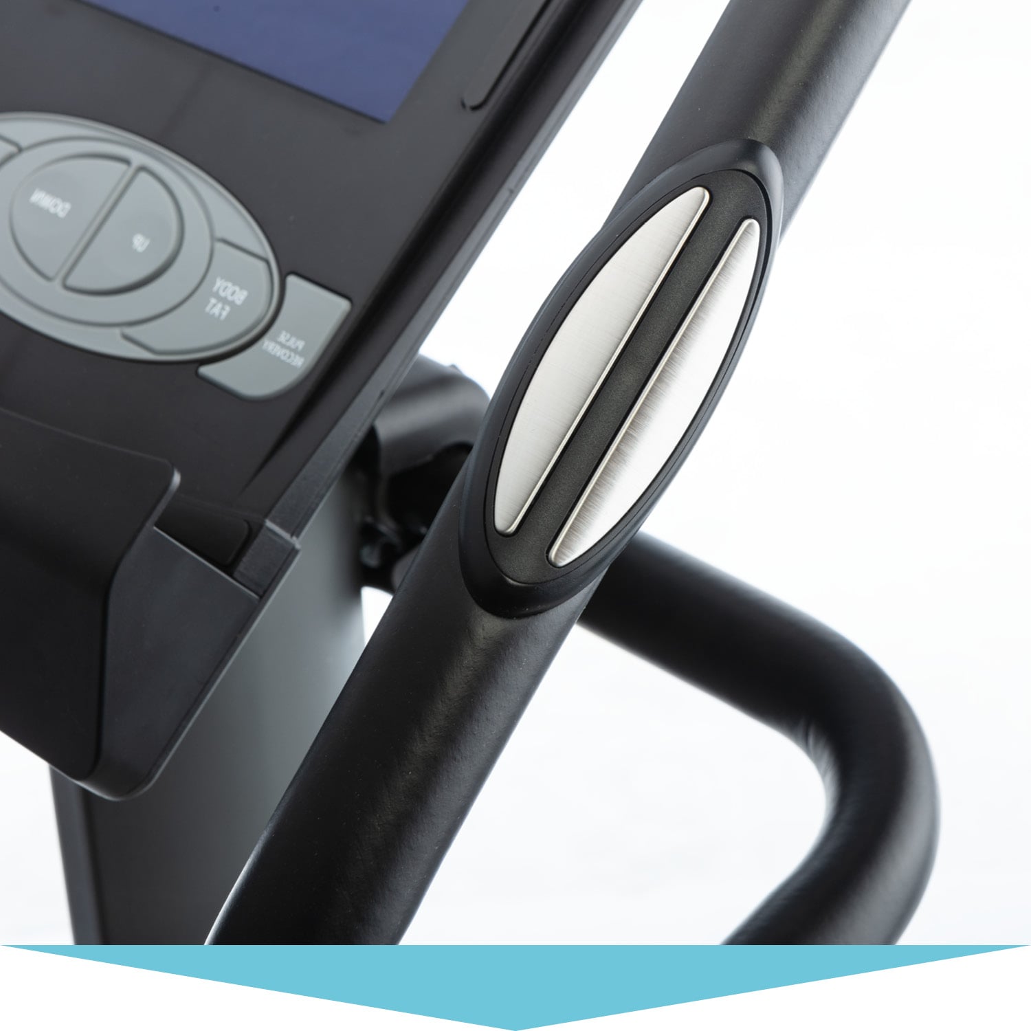 Für ein noch effektiveres Training wird der Puls über die vier im Lenker integrierten Edelstahl-Sensoren gemessen und in Echtzeit auf dem Trainingscomputer dargestellt. Alternativ dazu ist auch ein Brustgurt für die Pulsmessung im Lieferumfang inklusive.