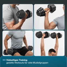 - Verstellbare Hantel mit 12 Gewichtsstufen von 1,5 kg bis 18 kg für progressives Krafttraining