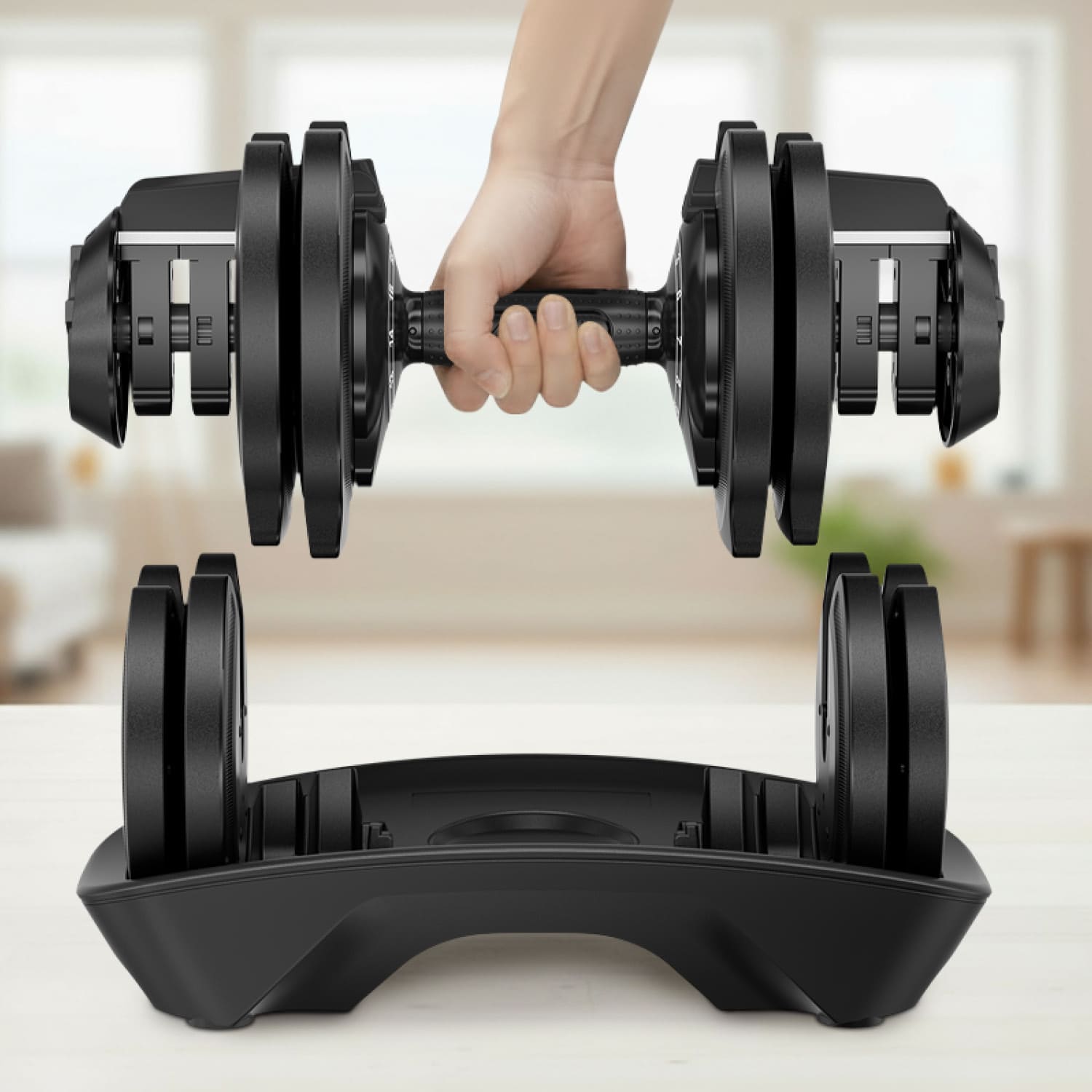 Anstatt zwölf separate Hanteln unterbringen zu müssen, nimmt die Paino mit ihren kompakten Maßen nur minimal Platz ein. Das All-in-One-Design beendet das Hantelchaos und macht sie ideal für das Training zu Hause.