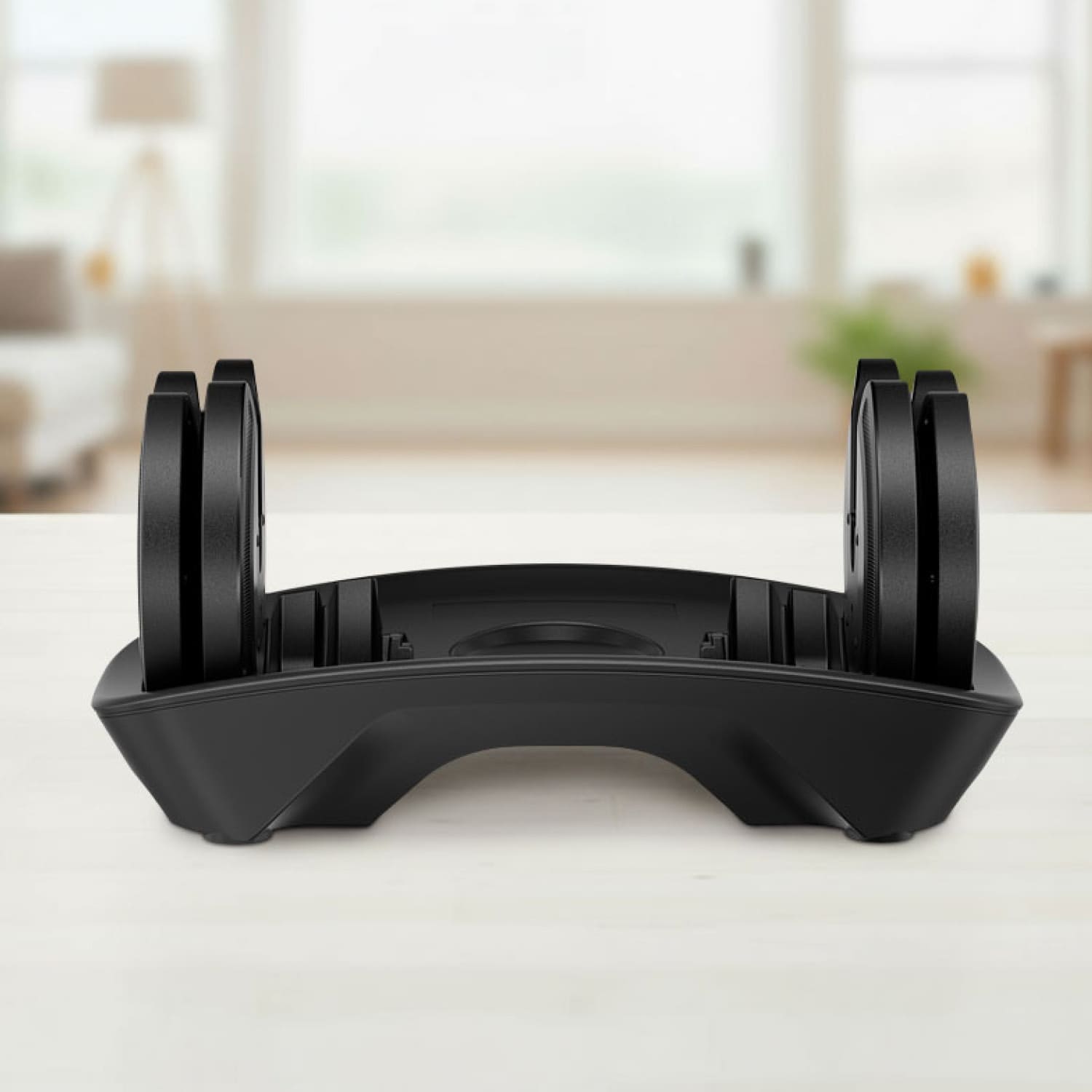 Die mitgelieferte Ablage dient nicht nur zur platzsparenden Aufbewahrung, sondern ist integraler Bestandteil des Schnellwechselsystems. Sie ermöglicht den komfortablen Gewichtswechsel und hält die Hantel sicher und griffbereit.