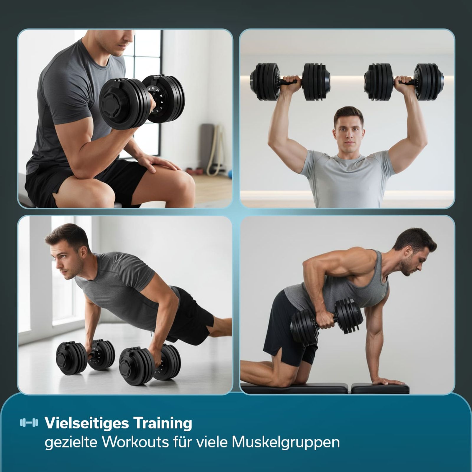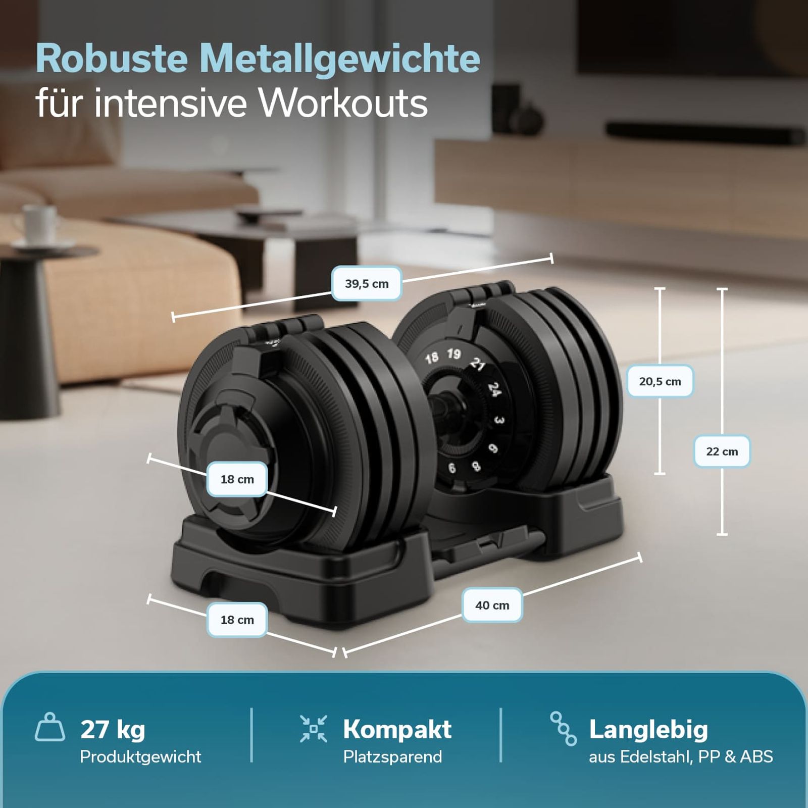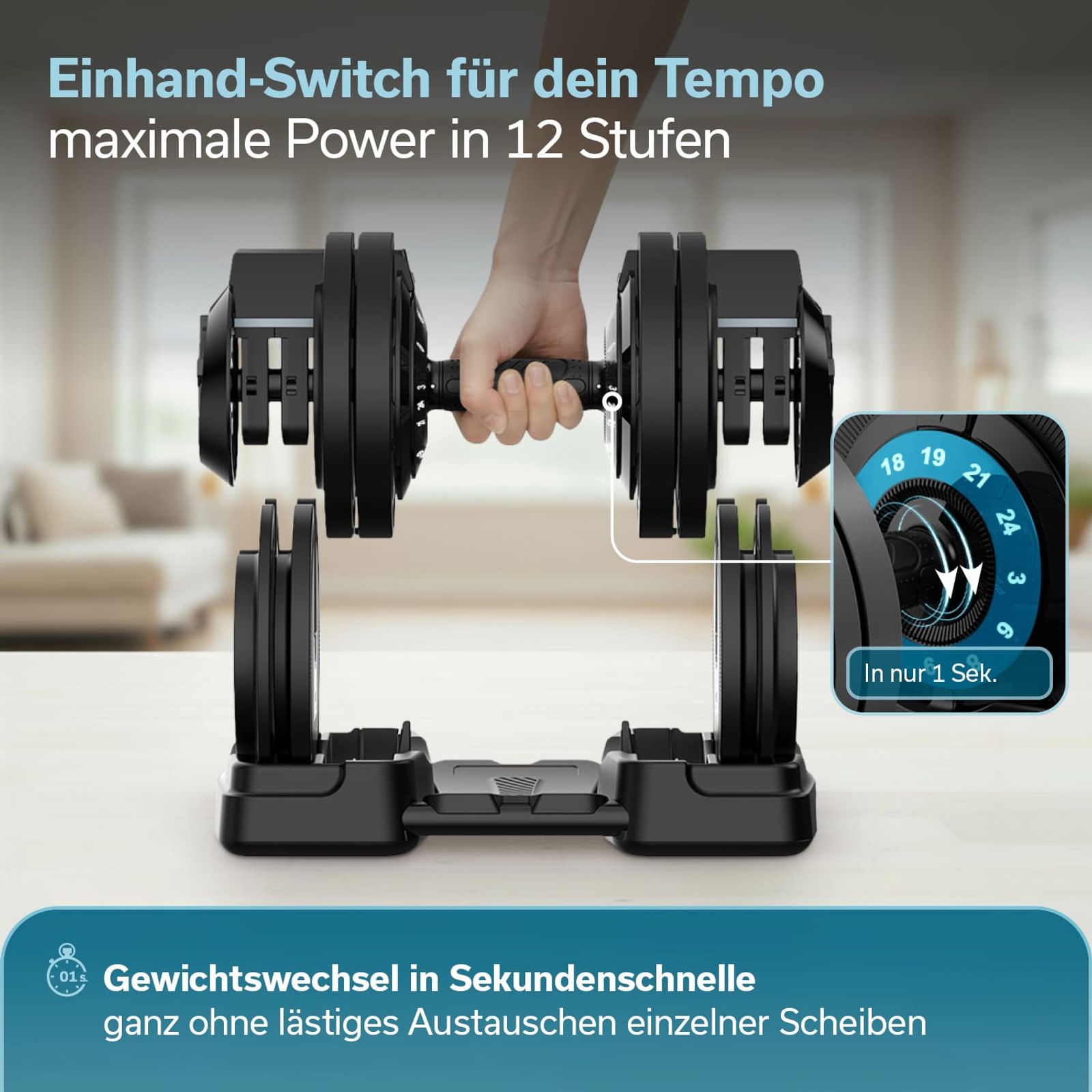- Verstellbare Hantel mit 12 Gewichtsstufen von 3 kg bis 24 kg für progressives Krafttraining