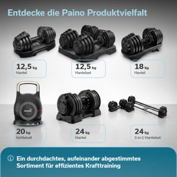 Mit einem Gewichtsbereich von 3 bis 24 kg eignet sich die Paino sowohl für Trainingsanfänger als auch für erfahrene Sportler. Sie wächst mit dem Leistungsstand mit und bleibt langfristig ein wertvoller Trainingspartner.