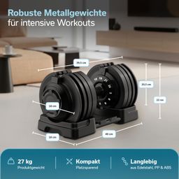 - Platzsparendes All-in-One-Design ersetzt zwölf separate Hanteln und spart wertvollen Trainingsplatz