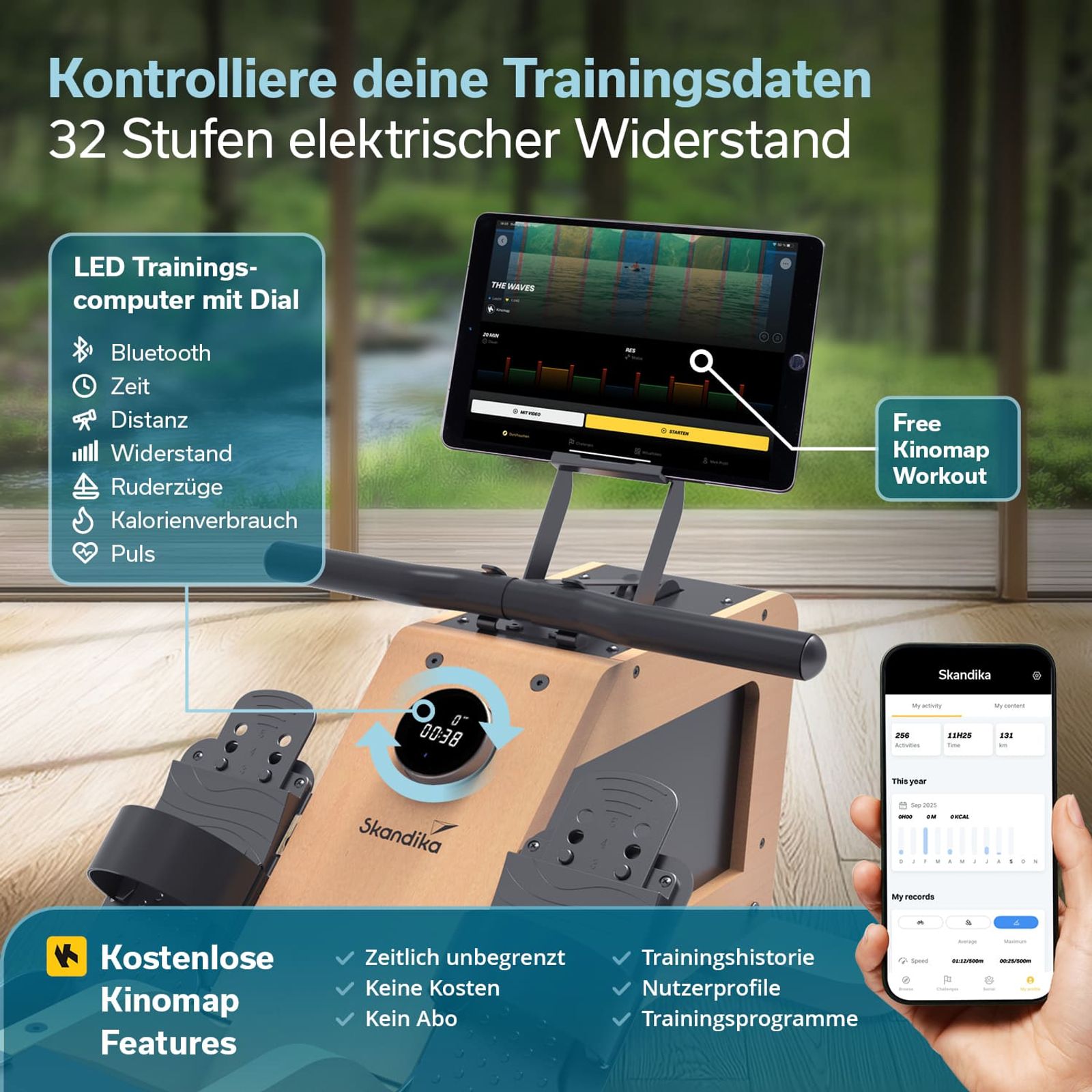 - Kinomap-kompatibel via Bluetooth mit 30 Tage kostenfreier Vollversion für Skandika-Kunden durch Gold-Partnerschaft