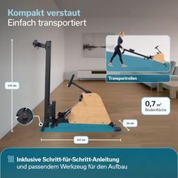 - Klappbares Rudergerät aus robustem Eisen mit hochwertigen Echtholz-Elementen
