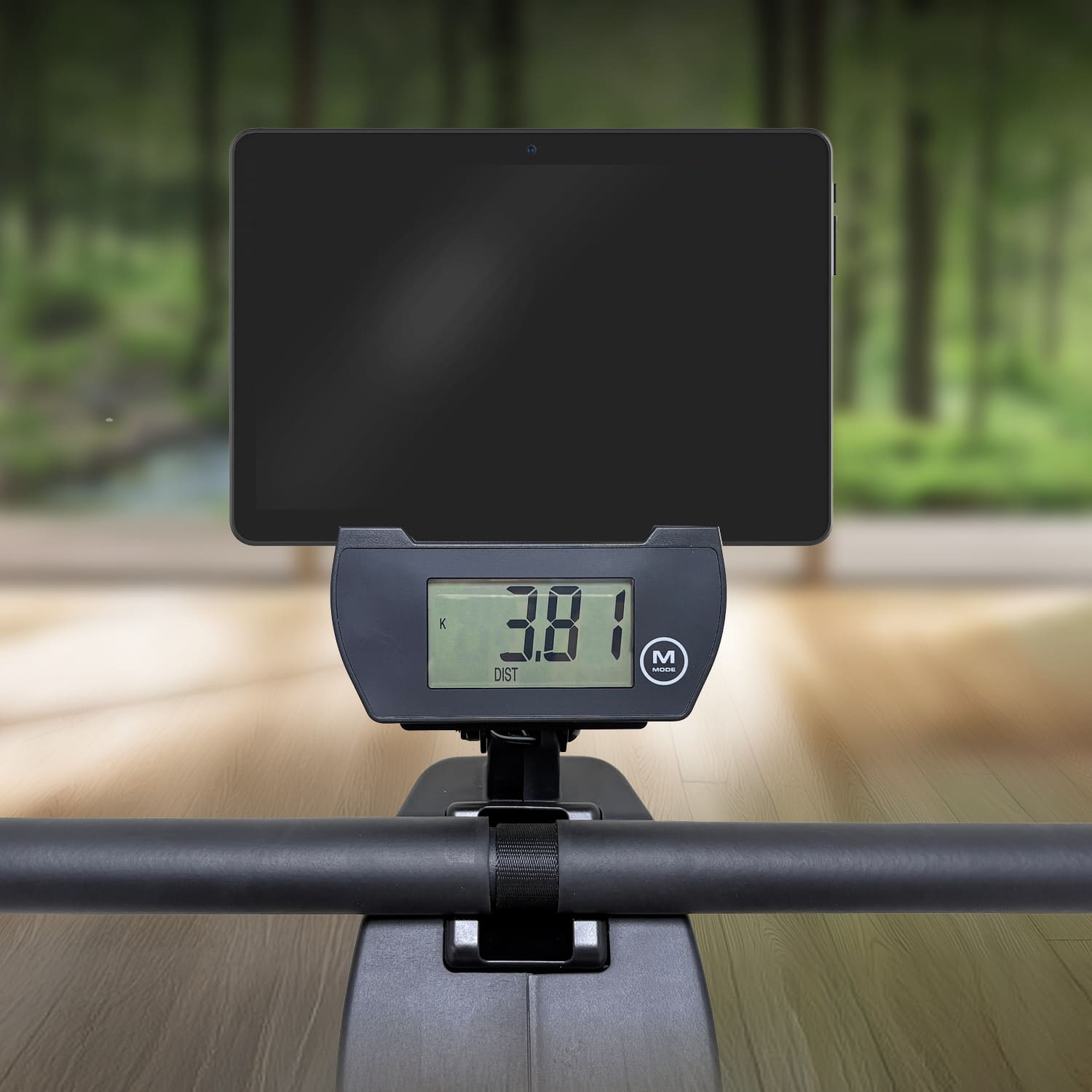 Auf dem LCD-Computer-Display werden alle relevanten Daten für eine zielorientierte Trainingssteuerung angezeigt, darunter Zeit, Ruderzüge, Kalorien, und Distanz.