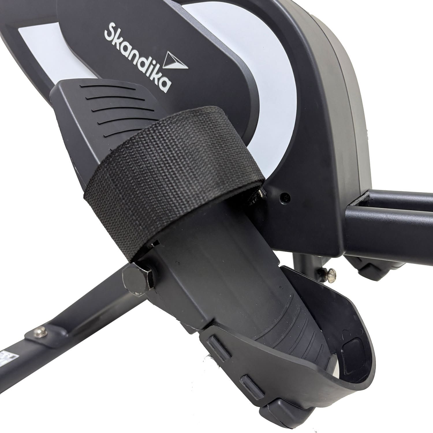 Rutschfeste Fußauflagen mit verstellbaren Klettgurten bieten festen Halt bei jedem Ruderzug und sorgen für maximale Sicherheit.
