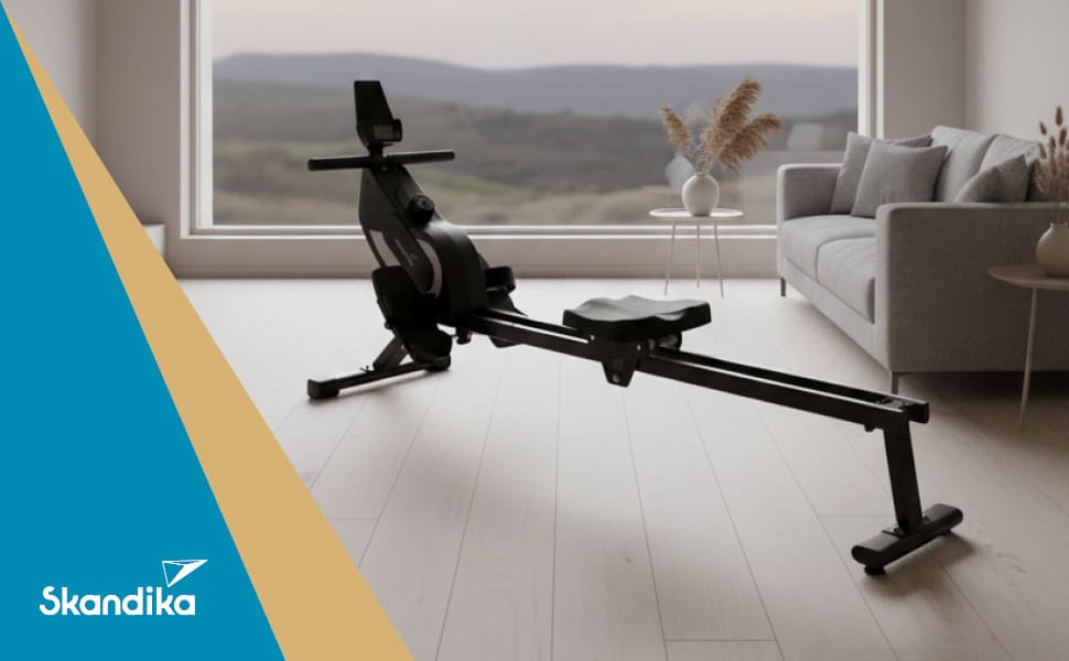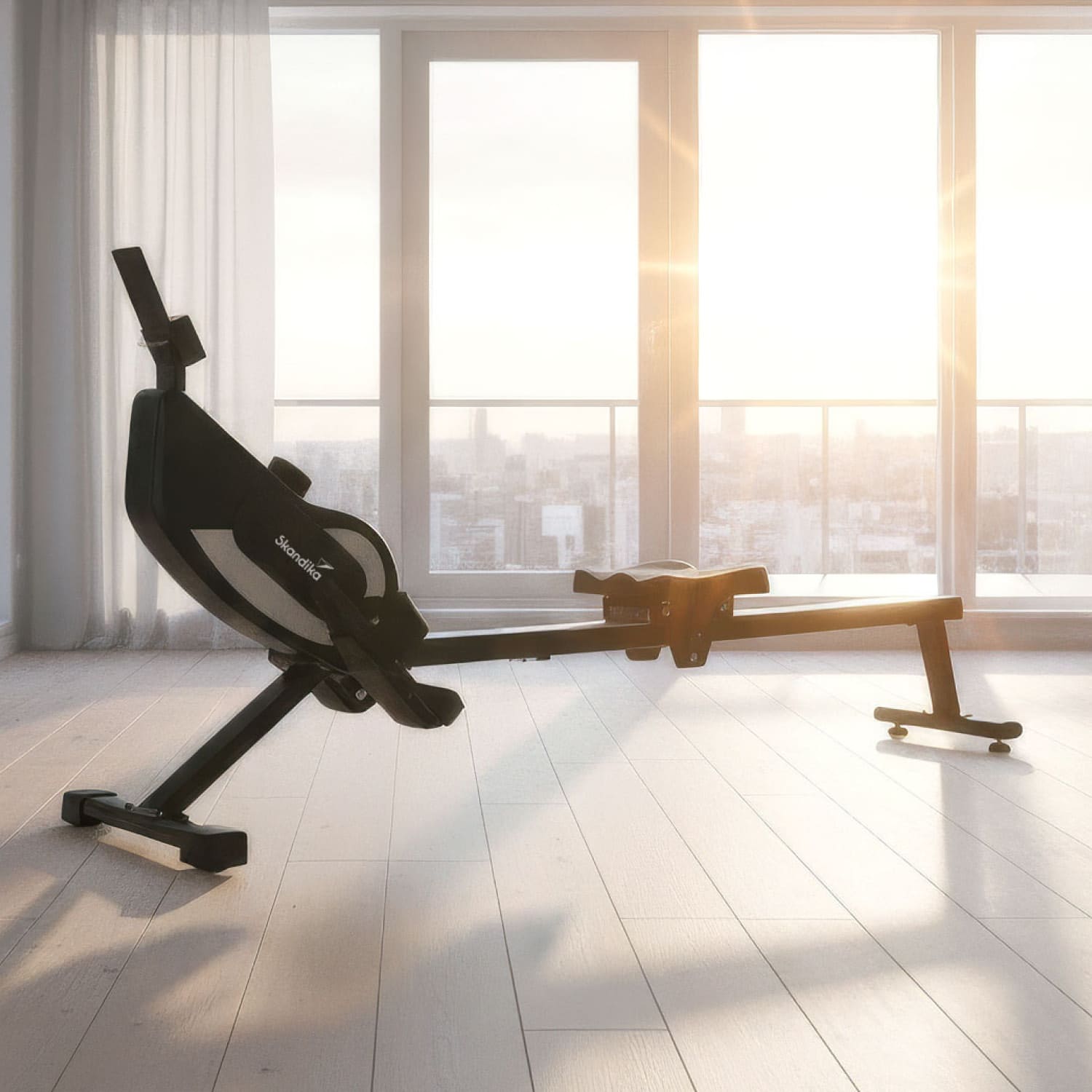Rudermaschine mit Magnetwiderstand und extra langer Laufschiene