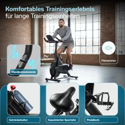 Eine Getränkehalterung und der gepolsterte Sportsitz sorgen selbst bei langen Workouts für ein komfortables Trainingserlebnis. Dank der integrierten Transportrollen ist der Heimtrainer besonders leicht zu bewegen und schnell verstaut.