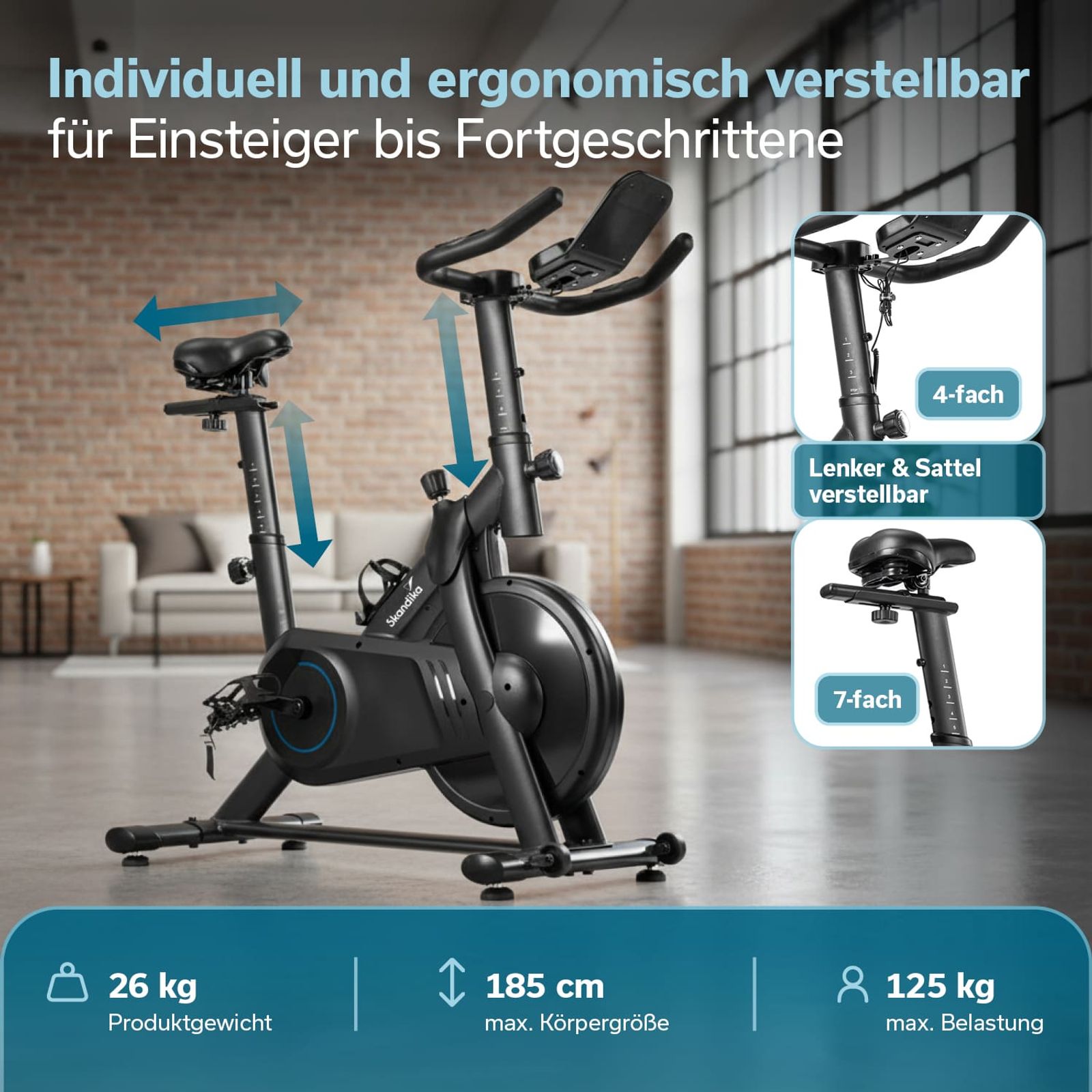 - 8 kg Schwungmassensystem mit stufenlos verstellbarem Widerstand