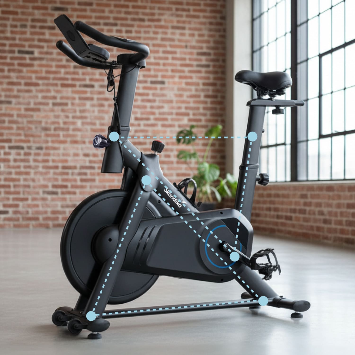 Durch die innovative Doppel-Dreiecksform des Stahlrahmens werden Trittlast und Körpergewicht gleichmäßig verteilt, sodass der Heimtrainer auch bei hohen Widerständen oder Sprints in einer stabilen Position bleibt.