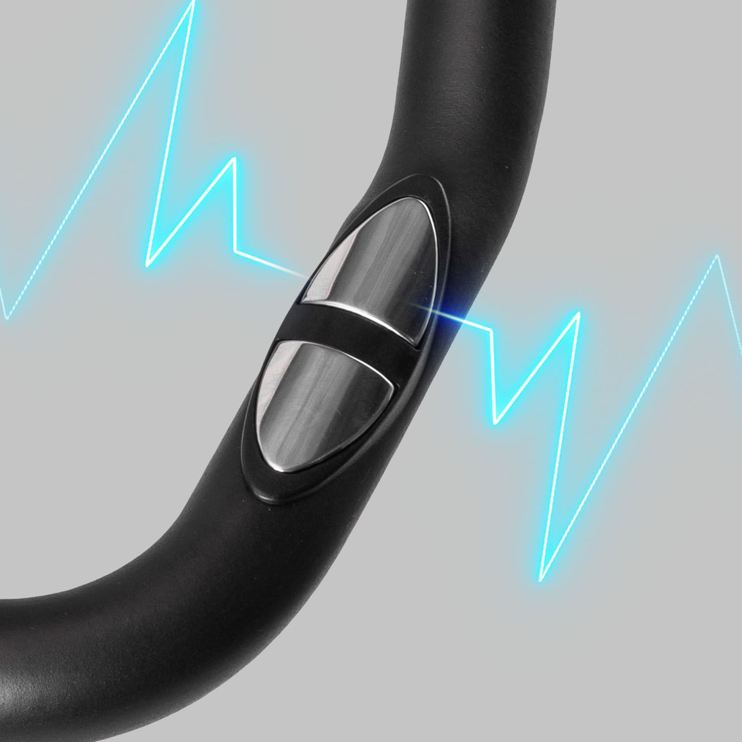 In den Lenker sind Handpulssensoren integriert, die eine präzise und kontinuierliche Pulsmessung während des Trainings ermöglichen. Der gemessene Wert wird mit den anderen Trainingsdaten auf dem Display angezeigt.