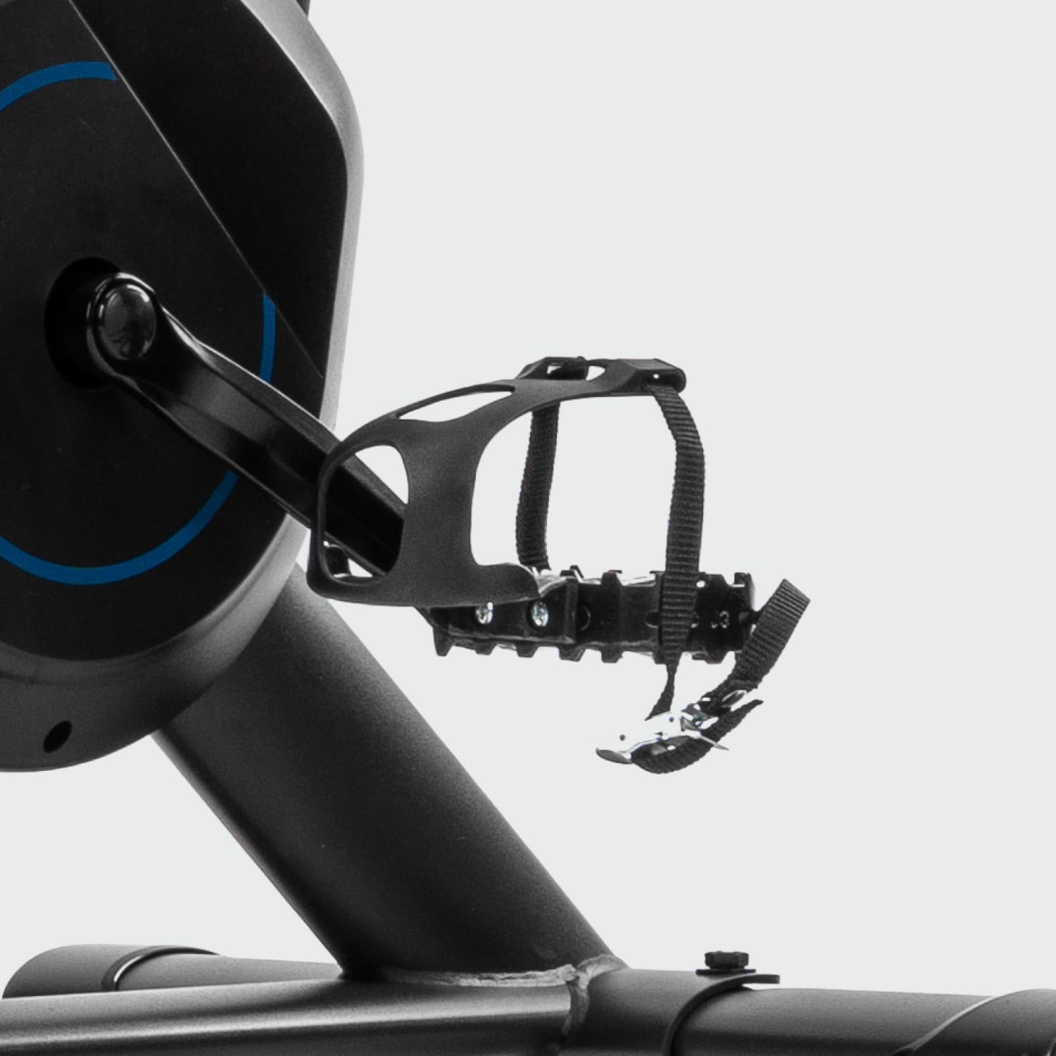 - Pedale mit Pedalkörben, verstellbaren Fußschlaufen und Anti-Rutsch-Profil