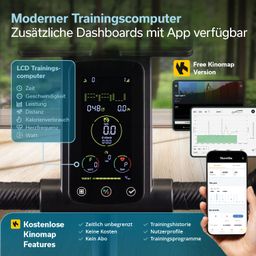 - Kinomap-kompatibel mit Bluetooth – 60 Tage kostenfreier Vollzugang für virtuelle Strecken weltweit