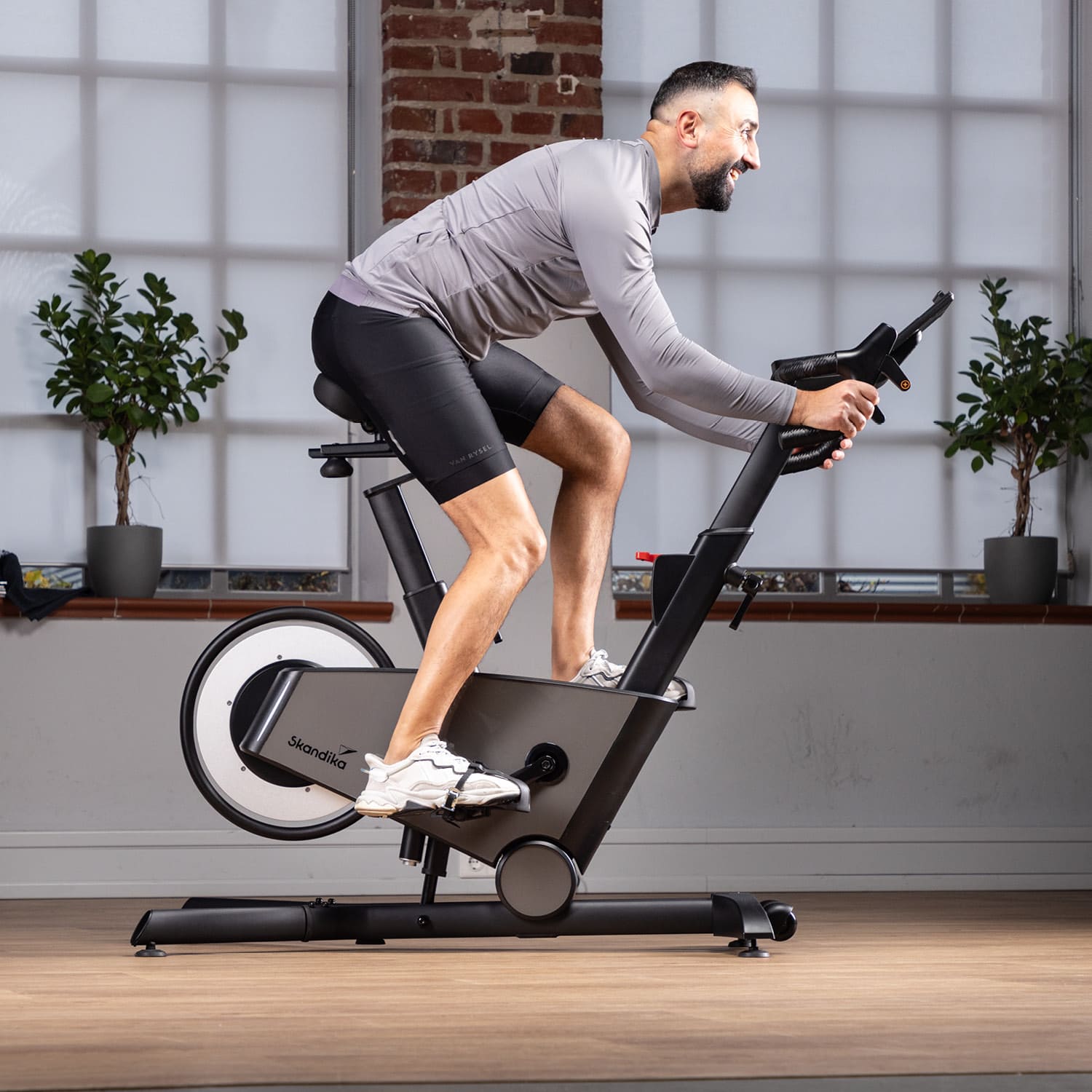 Das Skandika Speedbike Kliva 800-S überzeugt mit bis zu 800 Watt Trainingsleistung und hebt Indoor-Cycling auf ein völlig neues Level. Das Besondere: Dieses smarte Speedbike simuliert Steigungen und Gefälle nicht nur virtuell über den Widerstand, sondern bewegt sich auch tatsächlich. Der integrierte Steigungsmotor neigt das gesamte Bike vor und zurück und schafft damit ein authentisches Fahrgefühl, das dem echten Rennradtraining auf der Straße so nah kommt wie bei kaum einem anderen Indoor-Bike.