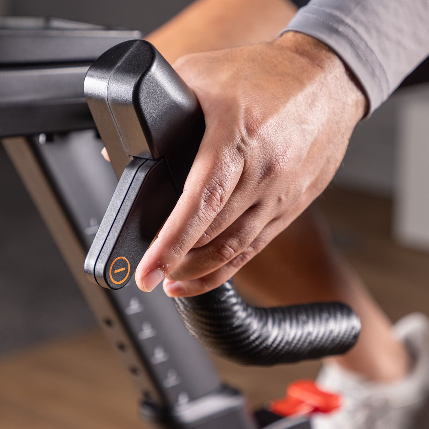 - Integrierte Button am Lenker für Anpassen von Widerstand und Neigung