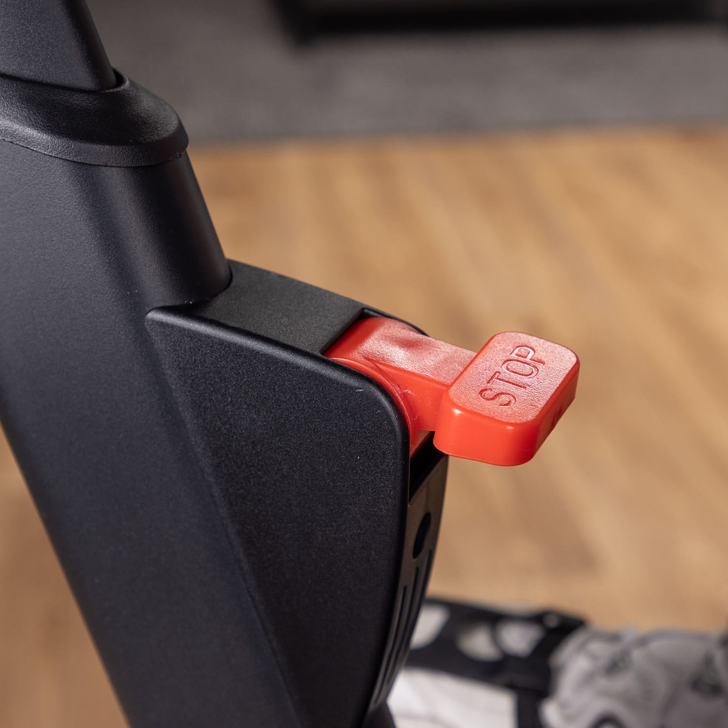 Für hohe Geschwindigkeiten und intensive Trittfolgen steht Sicherheit beim Kliva 800-S an erster Stelle. Im Notfall bringt die integrierte Not-Bremse bei Betätigung das Schwungrad sofort zum Stillstand und schützt so auch bei abruptem Stopp vor Überlastung der Knie – selbst bei hoher Belastung oder Steigung.