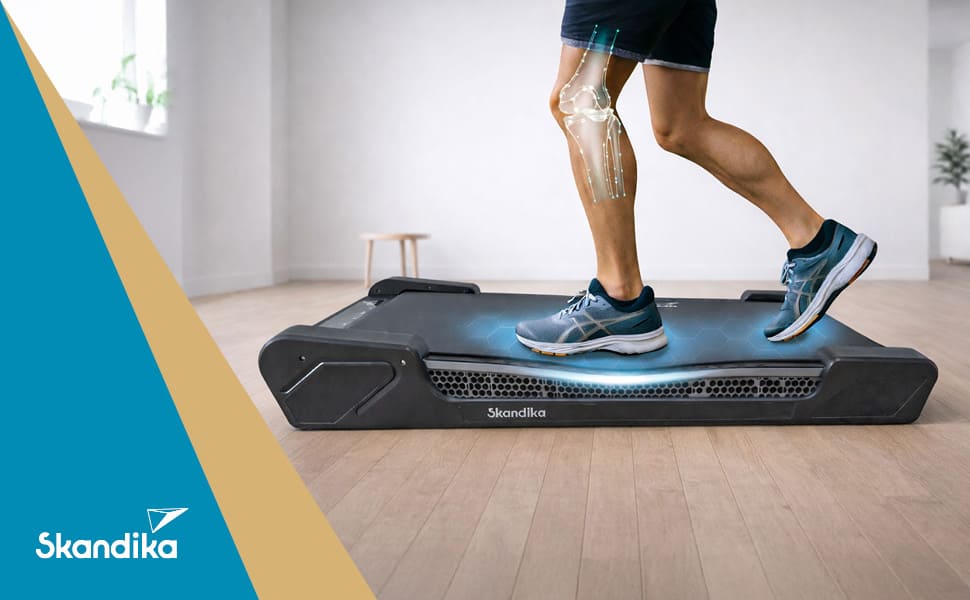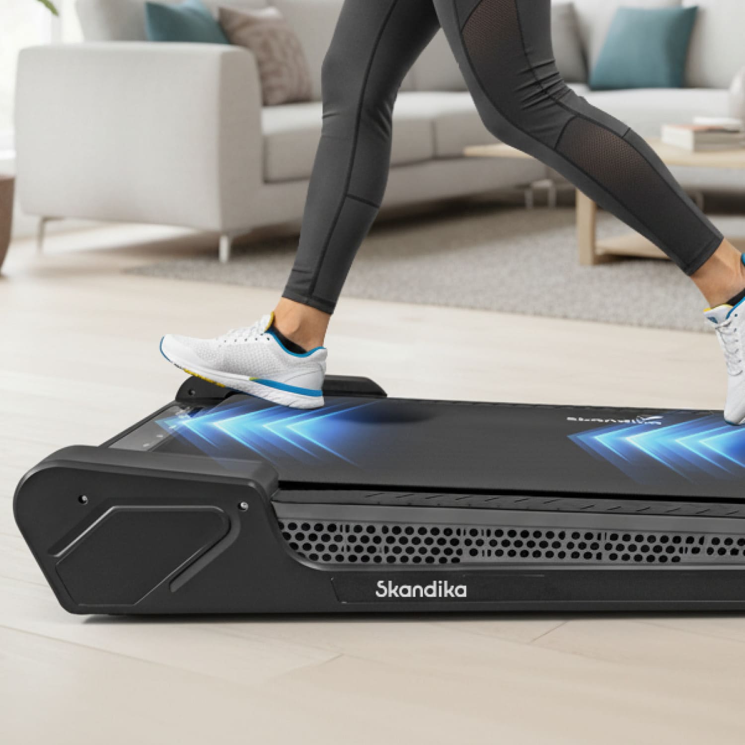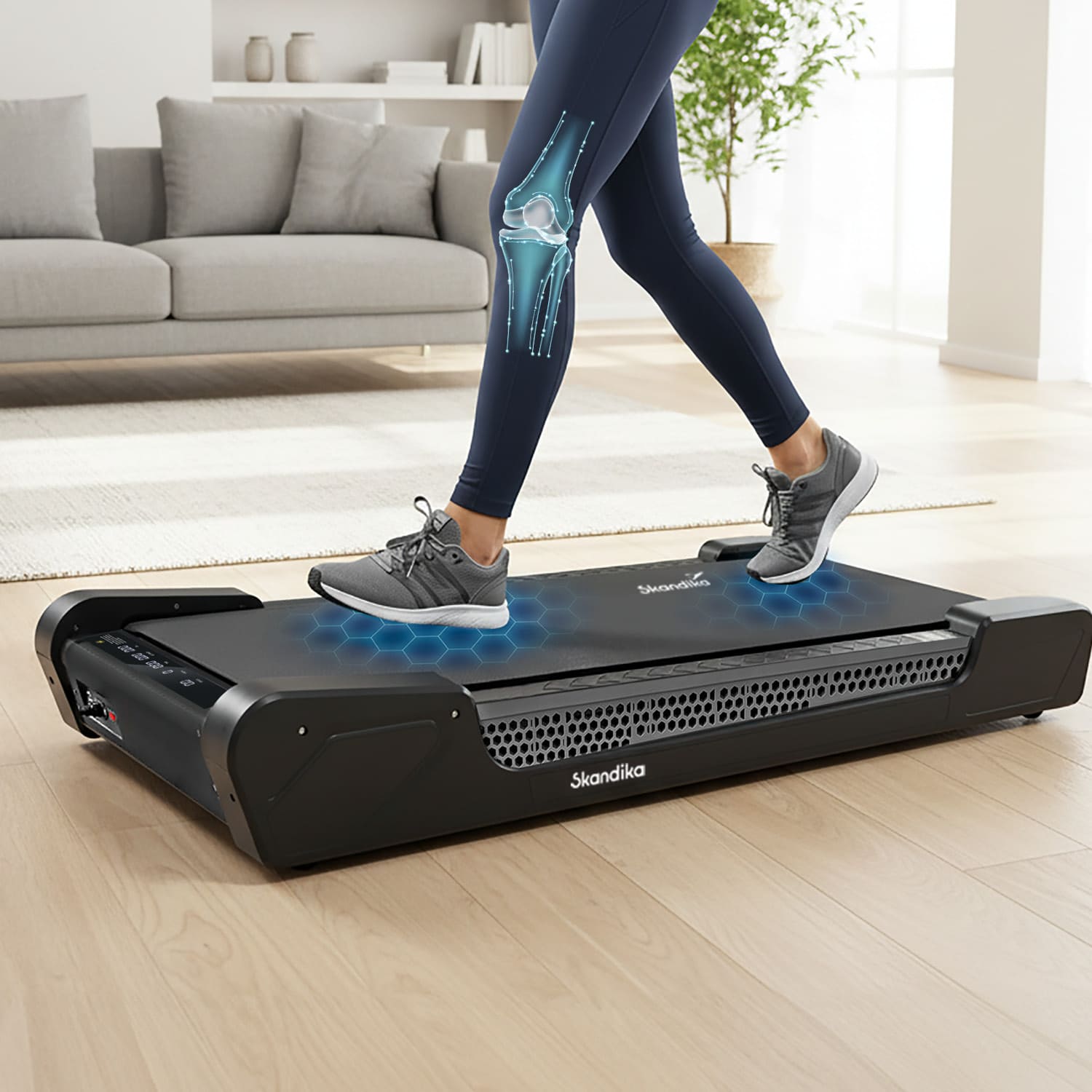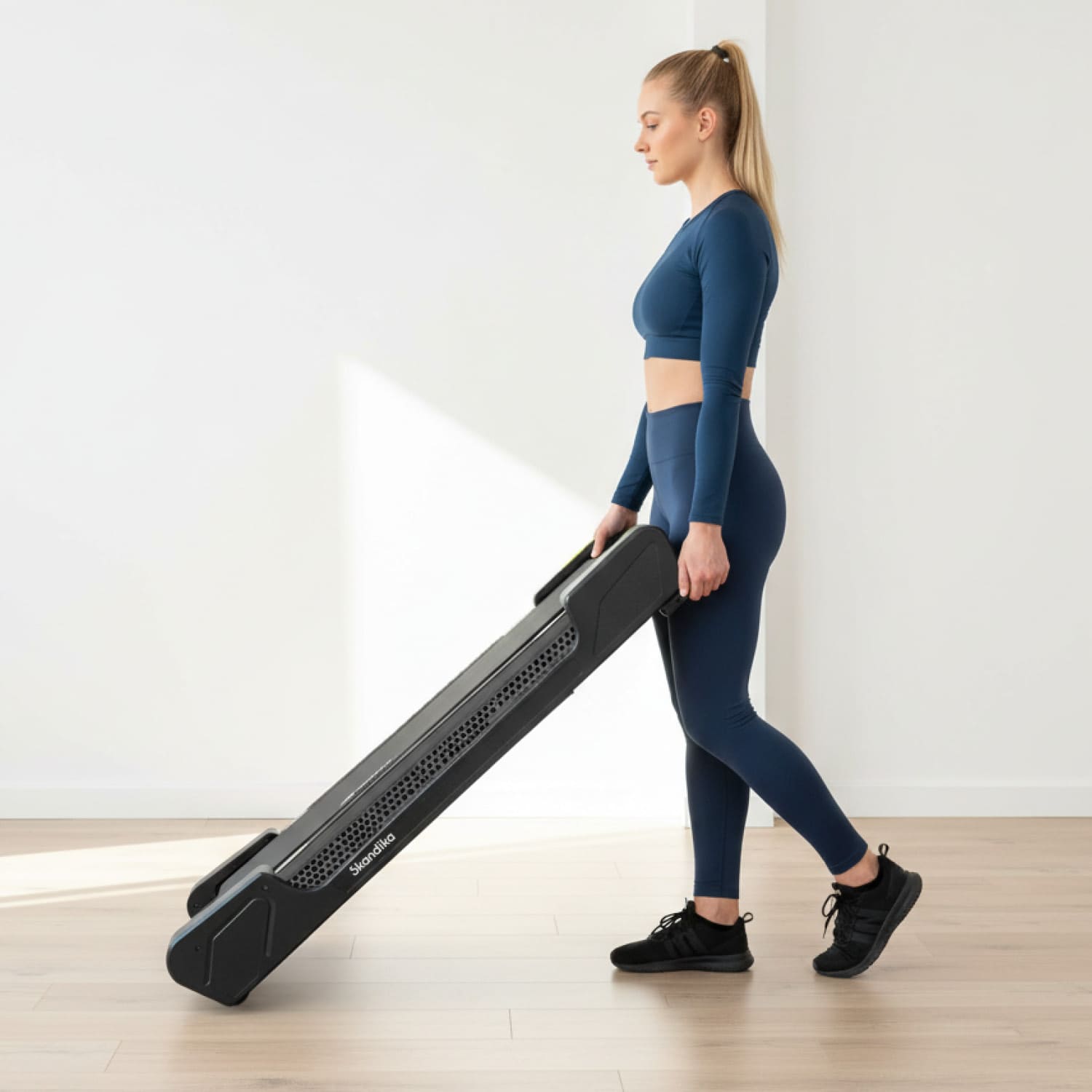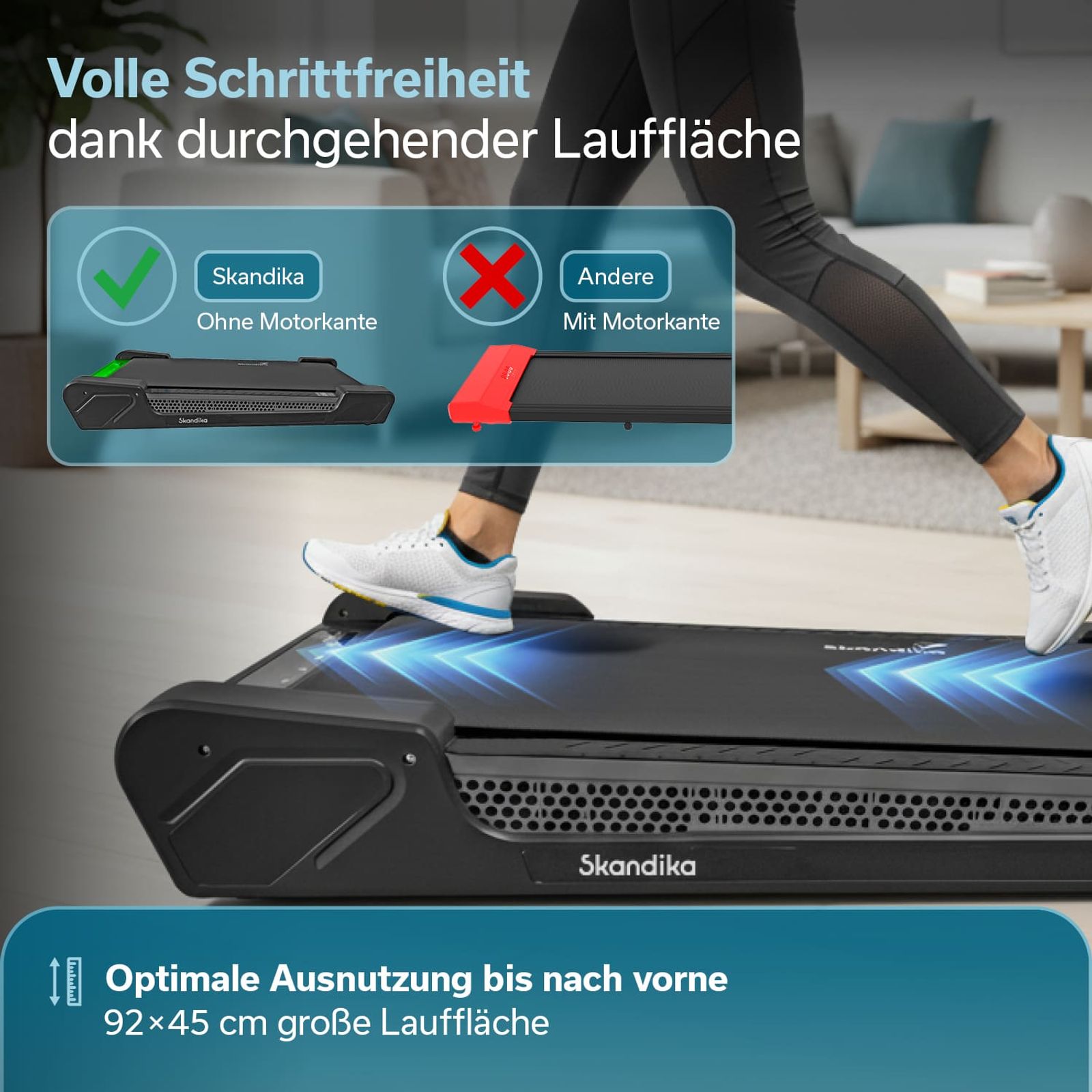 Bereits 4.000 bis 7.000 Schritte täglich fördern die kardiovaskuläre Gesundheit, regulieren den Blutdruck und steigern die mentale Leistungsfähigkeit. Das Trekant K6-S Walking Pad integriert Bewegung mühelos in den Alltag – ideal für Menschen mit sitzenden Tätigkeiten. Was dieses Skandika Walking Pad auszeichnet: die permanente 3 % Steigung für bis zu 25 % mehr Kalorienverbrauch, die vollständig nutzbare Lauffläche dank Motor-Unterbau sowie das wabenförmige Dämpfungssystem.