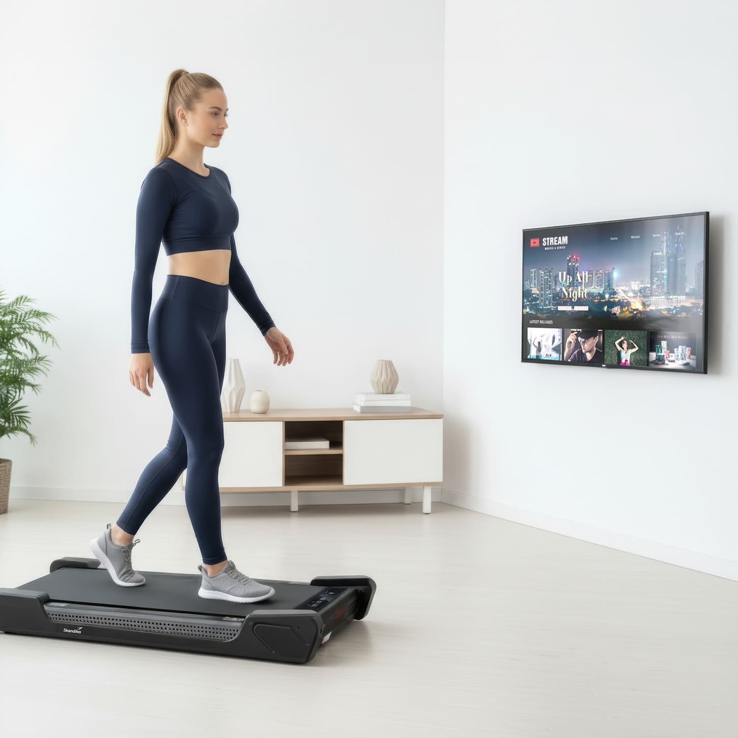Auf die tägliche Schrittzahl zu kommen ist mit dem Trekant kein Problem, vor allem wenn dabei die Lieblingsserie läuft. Vor dem Fernseher oder Laptop aufgebaut macht das Gehen auf dem Walking Pad gleich viel mehr Spaß. Bewegung und Unterhaltung lassen sich so mühelos verbinden.