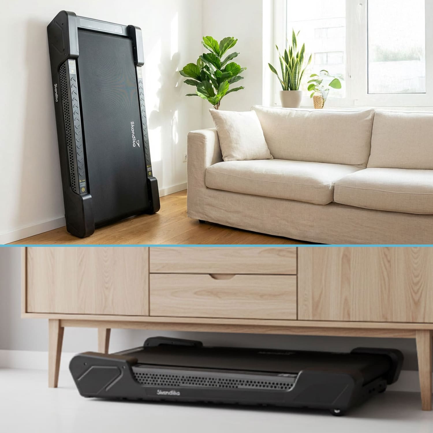 Dank seiner äußerst kompakten Maße und der flachen Bauweise lässt sich das Walking Pad flexibel verstauen – beispielsweise unter einem Sideboard, Sofa oder Bett, wo es kaum auffällt. Alternativ kann es auch platzsparend hochkant an einer Wand aufbewahrt werden. So bleibt mehr Raum für andere Aktivitäten, wenn das Gerät gerade nicht genutzt wird.