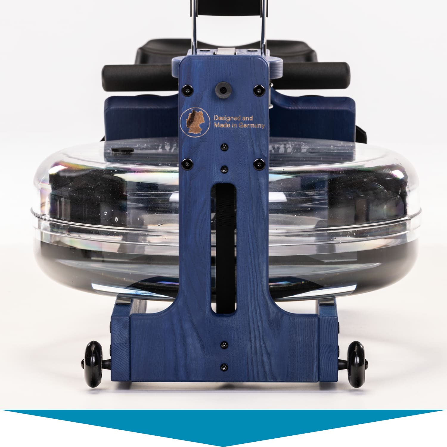 Dank der integrierten Transportrollen lässt sich Styrke nach dem Workout mit nur wenigen Handgriffen verstauen. Der Schwerpunkt am Wassertank und das abgerundete Design der hinteren Handstützen sorgen dafür, dass sich das massive Rudergerät spielend leicht aufstellen und auf diese Weise besonders platzsparend lagern lässt.