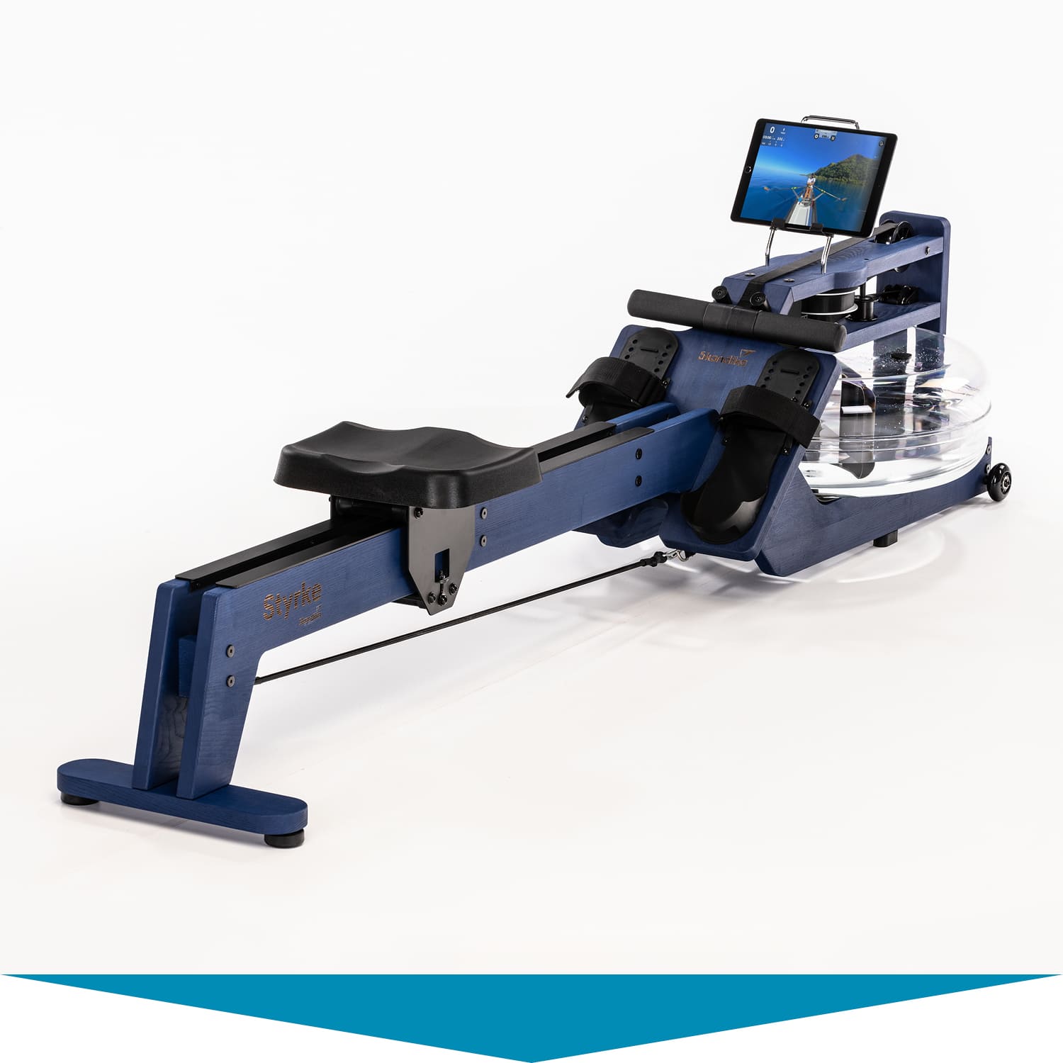 Das wassergebremste Zugsystem mit gleichmäßigem Wasserrauschen, die niedrige Sitzposition und unsere einzigartige Doppelrail mit Neigung sorgen dafür, dass sich Rudern auf dem Styrke authentisch anfühlt. Für alle, die flussaufwärts rudern wollen, mehr Widerstand benötigen oder bereits fortgeschrittene Ruderer sind, liegt zusätzlich im Lieferumfang ein stärkeres (rot markiertes) Zugband bei.