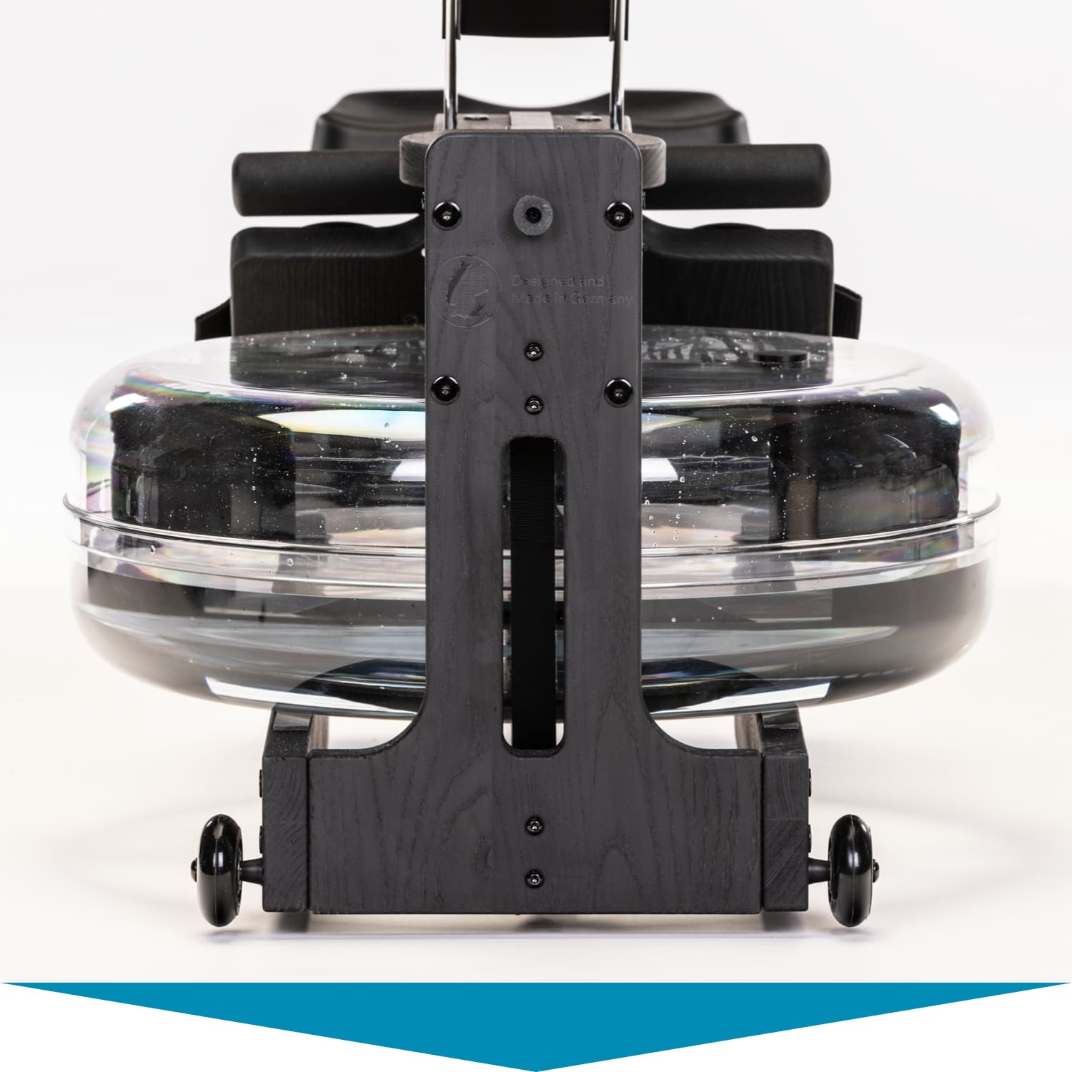 Dank der integrierten Transportrollen lässt sich Styrke nach dem Workout mit nur wenigen Handgriffen verstauen. Der Schwerpunkt am Wassertank und das abgerundete Design der hinteren Handstützen sorgen dafür, dass sich das massive Rudergerät spielend leicht aufstellen und auf diese Weise besonders platzsparend lagern lässt.