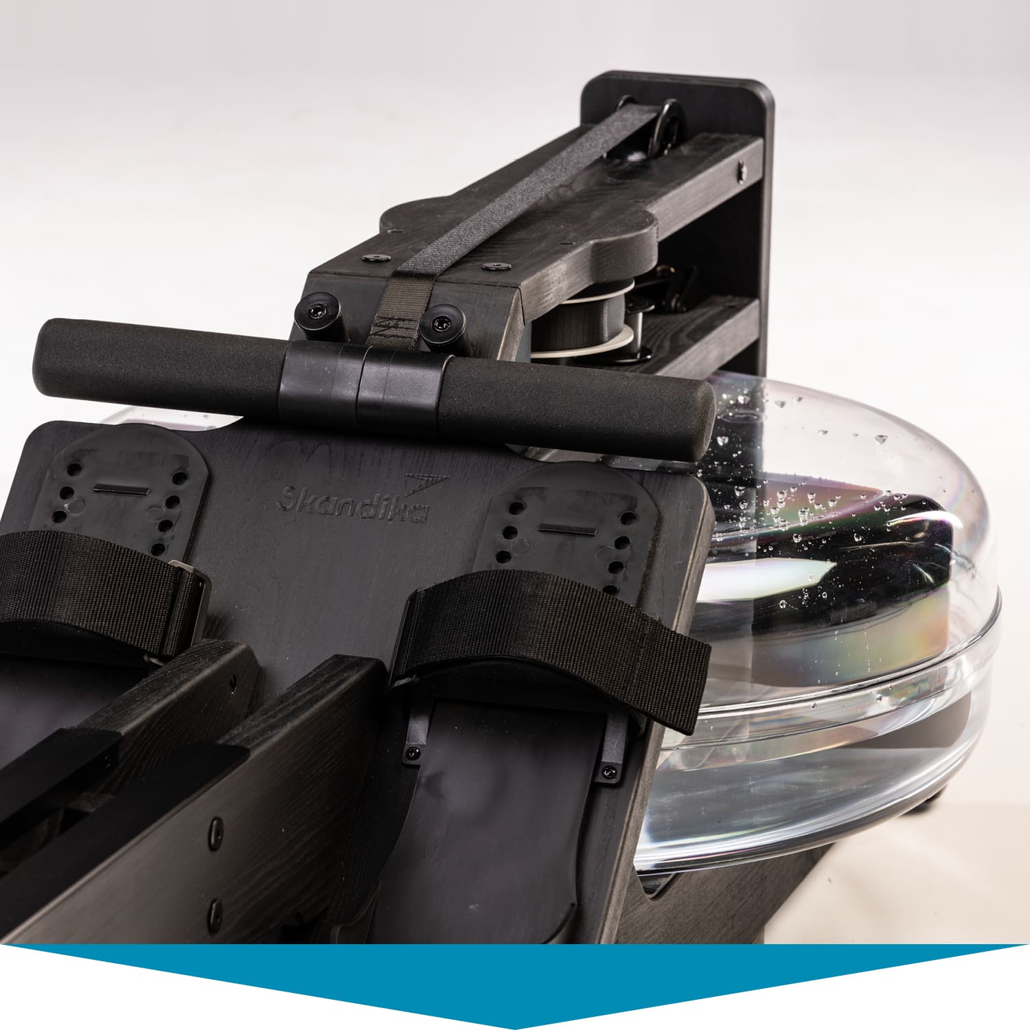 Herzstück des Styrke Premium: das wassergebremste Zugsystem. Im Inneren des bruchsicheren Wassertanks arbeitet ein Paddel. Es sorgt dafür, dass sich Rudern auf dem Styrke Premium auch wie Rudern anfühlt. Der Ruderwiderstand variiert je nach Ruderfrequenz und Füllmenge des Tanks. Dieser lässt sich mit 10 bis 15 Litern befüllen – je voller, desto höher der Widerstand.