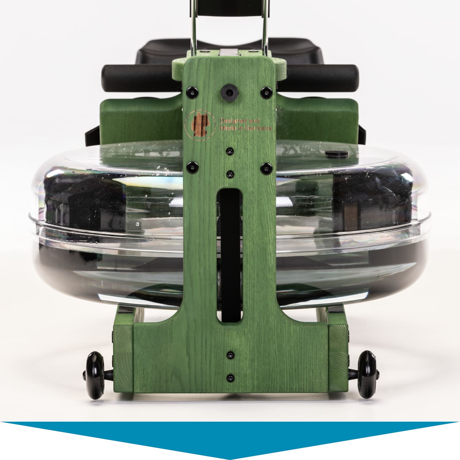 Dank der integrierten Transportrollen lässt sich Styrke nach dem Workout mit nur wenigen Handgriffen verstauen. Der Schwerpunkt am Wassertank und das abgerundete Design der hinteren Handstützen sorgen dafür, dass sich das massive Rudergerät spielend leicht aufstellen und auf diese Weise besonders platzsparend lagern lässt.