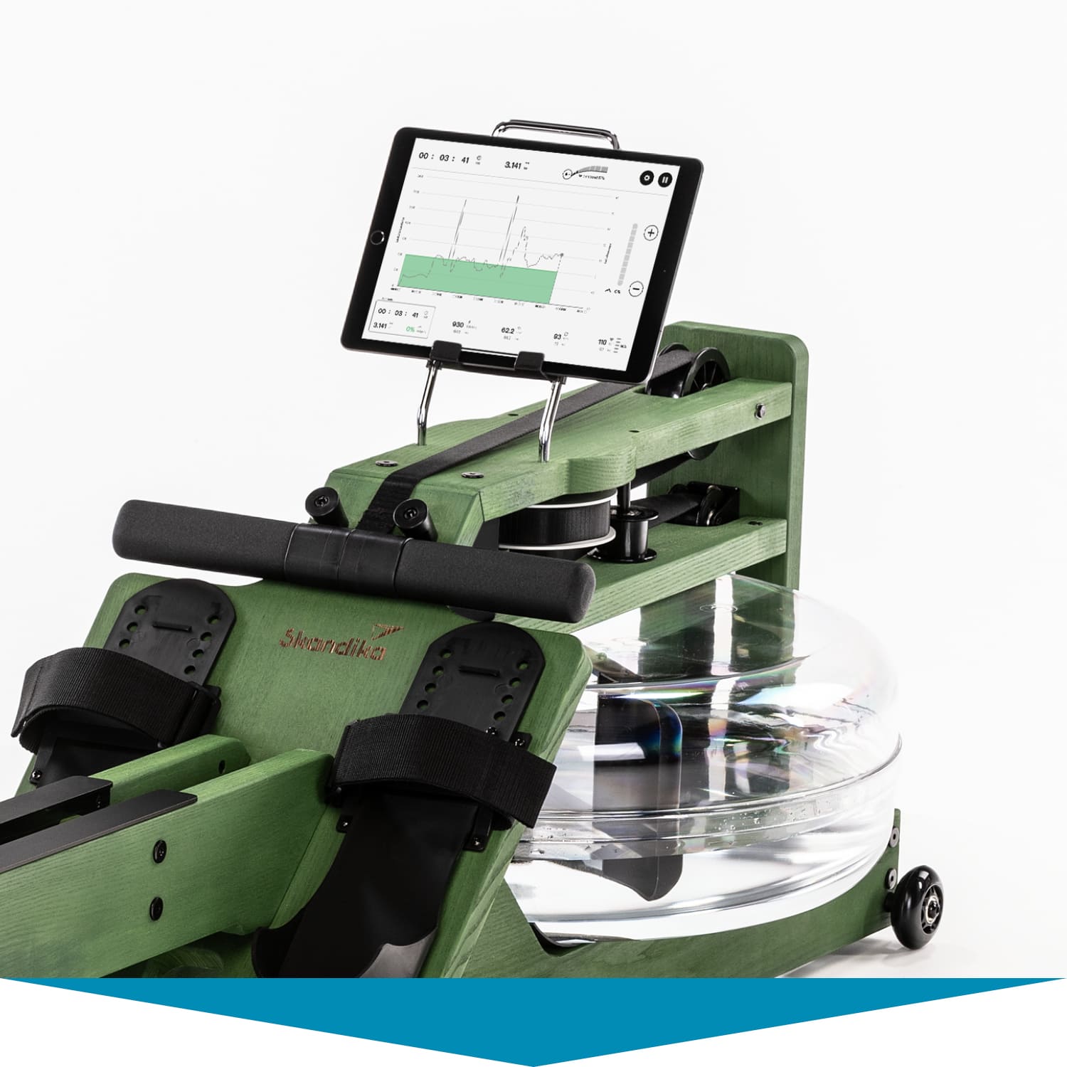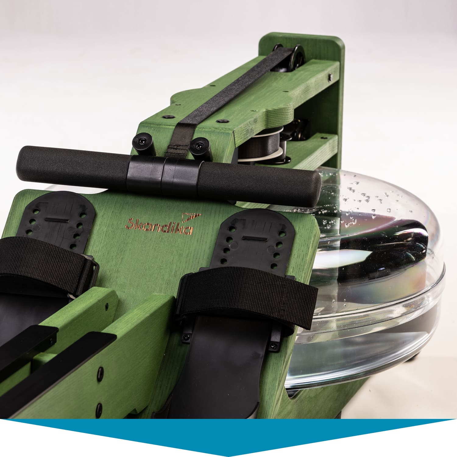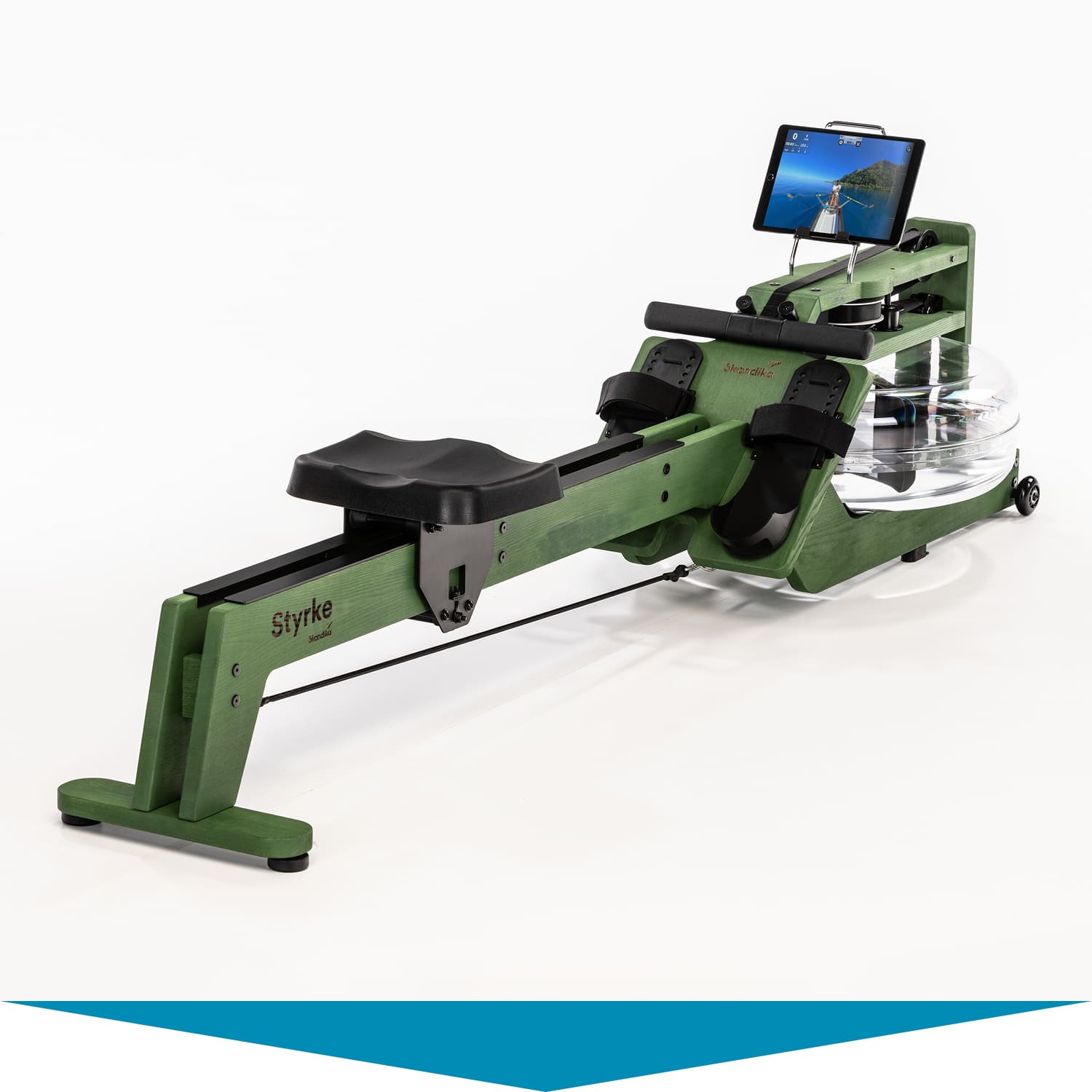 Das wassergebremste Zugsystem mit gleichmäßigem Wasserrauschen, die niedrige Sitzposition und unsere einzigartige Doppelrail mit Neigung sorgen dafür, dass sich Rudern auf dem Styrke authentisch anfühlt. Für alle, die flussaufwärts rudern wollen, mehr Widerstand benötigen oder bereits fortgeschrittene Ruderer sind, liegt zusätzlich im Lieferumfang ein stärkeres (rot markiertes) Zugband bei.