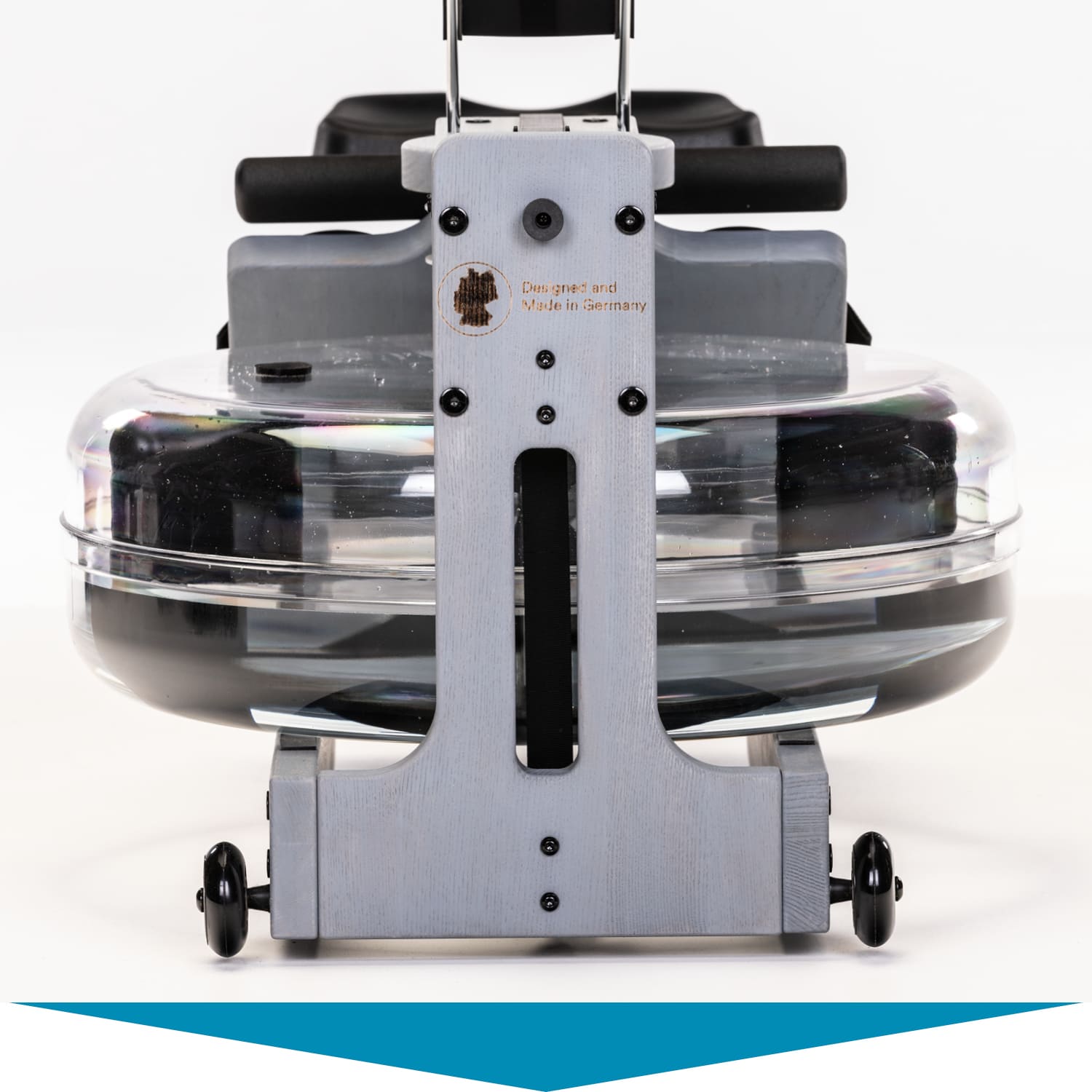 Dank der integrierten Transportrollen lässt sich Styrke nach dem Workout mit nur wenigen Handgriffen verstauen. Der Schwerpunkt am Wassertank und das abgerundete Design der hinteren Handstützen sorgen dafür, dass sich das massive Rudergerät spielend leicht aufstellen und auf diese Weise besonders platzsparend lagern lässt.