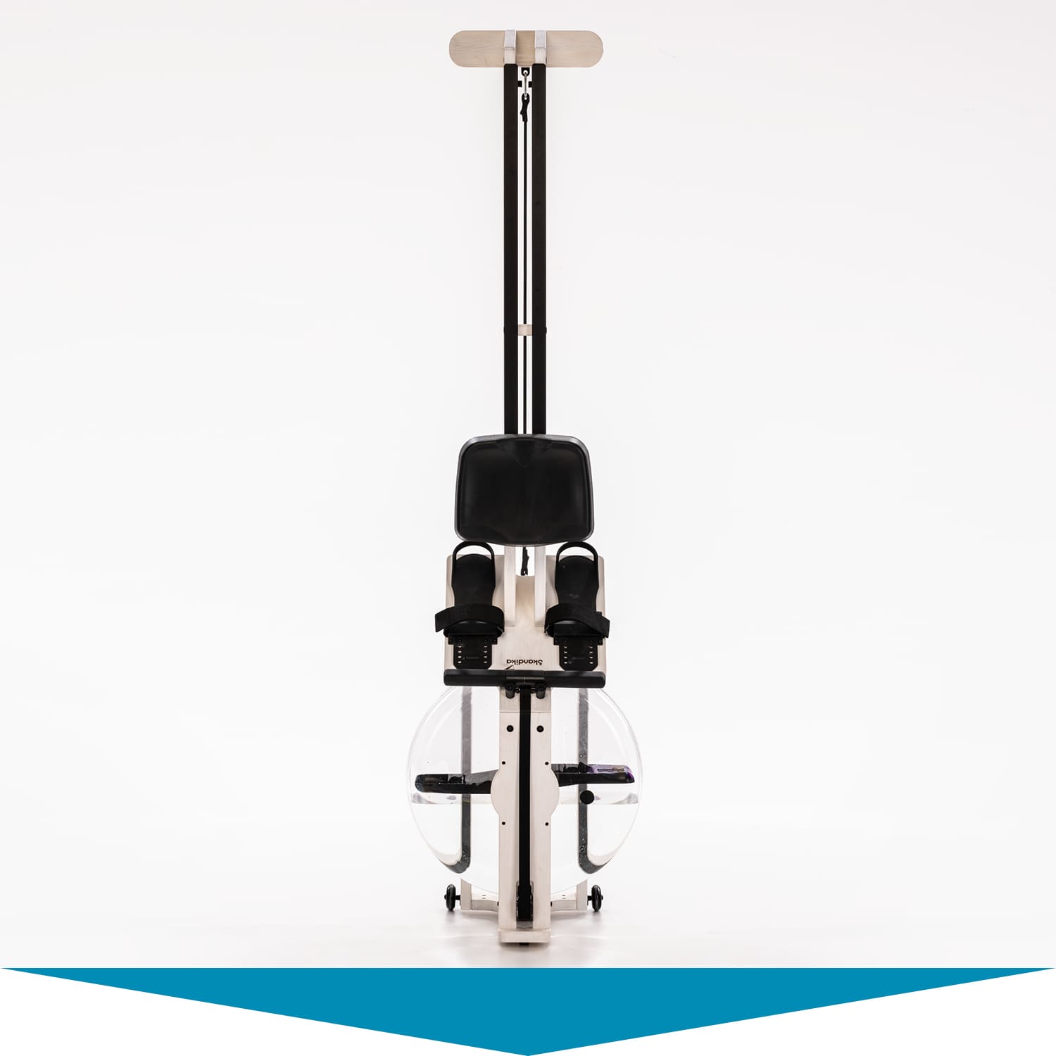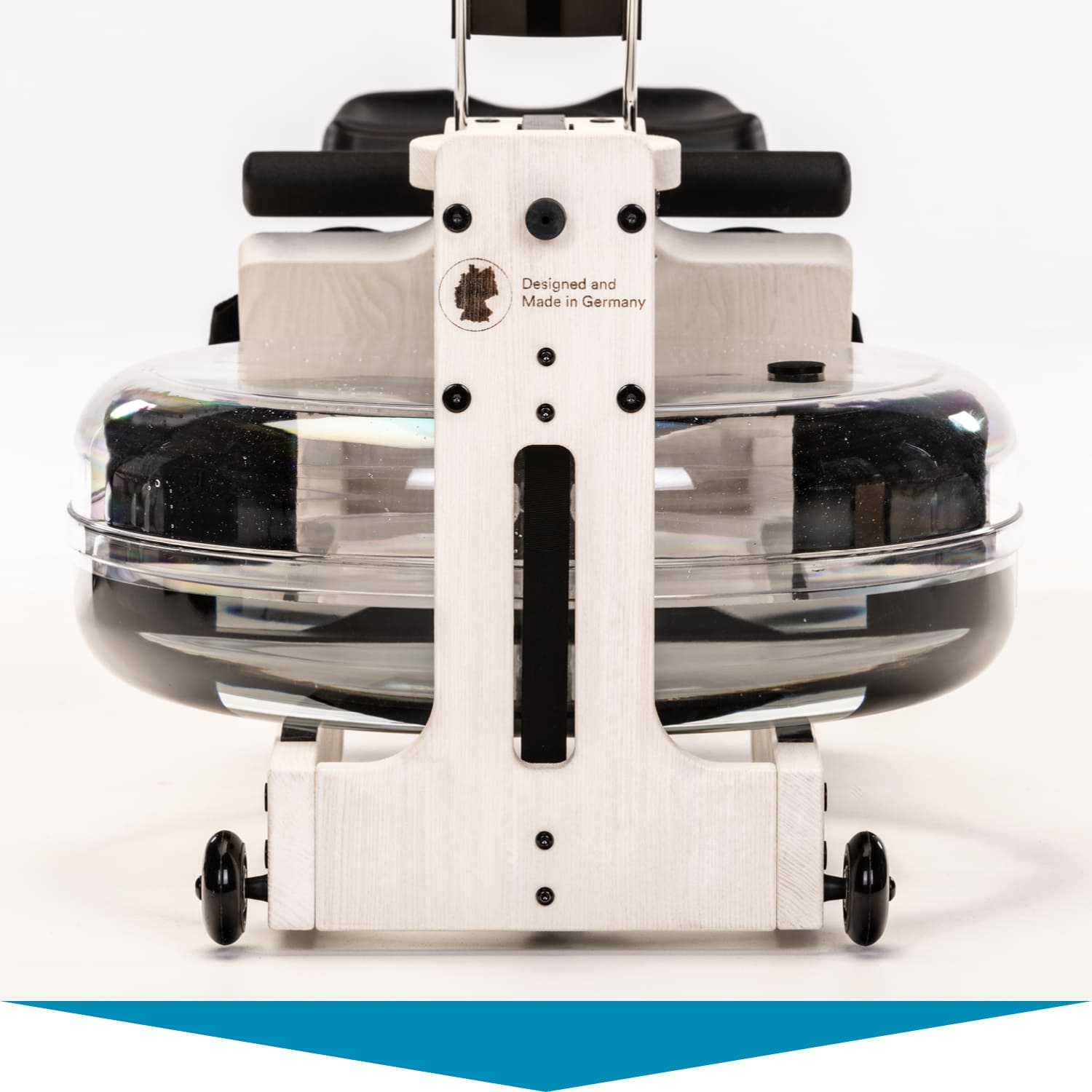 Dank der integrierten Transportrollen lässt sich Styrke nach dem Workout mit nur wenigen Handgriffen verstauen. Der Schwerpunkt am Wassertank und das abgerundete Design der hinteren Handstützen sorgen dafür, dass sich das massive Rudergerät spielend leicht aufstellen und auf diese Weise besonders platzsparend lagern lässt.