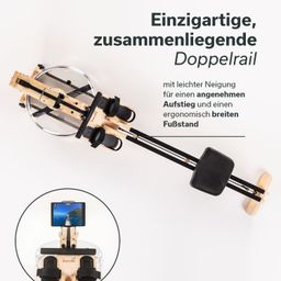 Die vollkommen neuartige, zusammenliegende Doppelrail ermöglicht einen beckenbreiten Stand der Füße. Das Ergebnis: ergonomisch korrekte Bewegungsabläufe für beschwerdefreies Absolvieren langer und intensiver Einheiten. Passend dazu: ein ergonomisch geformter, gepolsterter Sitz und der an die Handflächen angepasste Rudergriff mit Anti-Rutsch-Beschichtung.