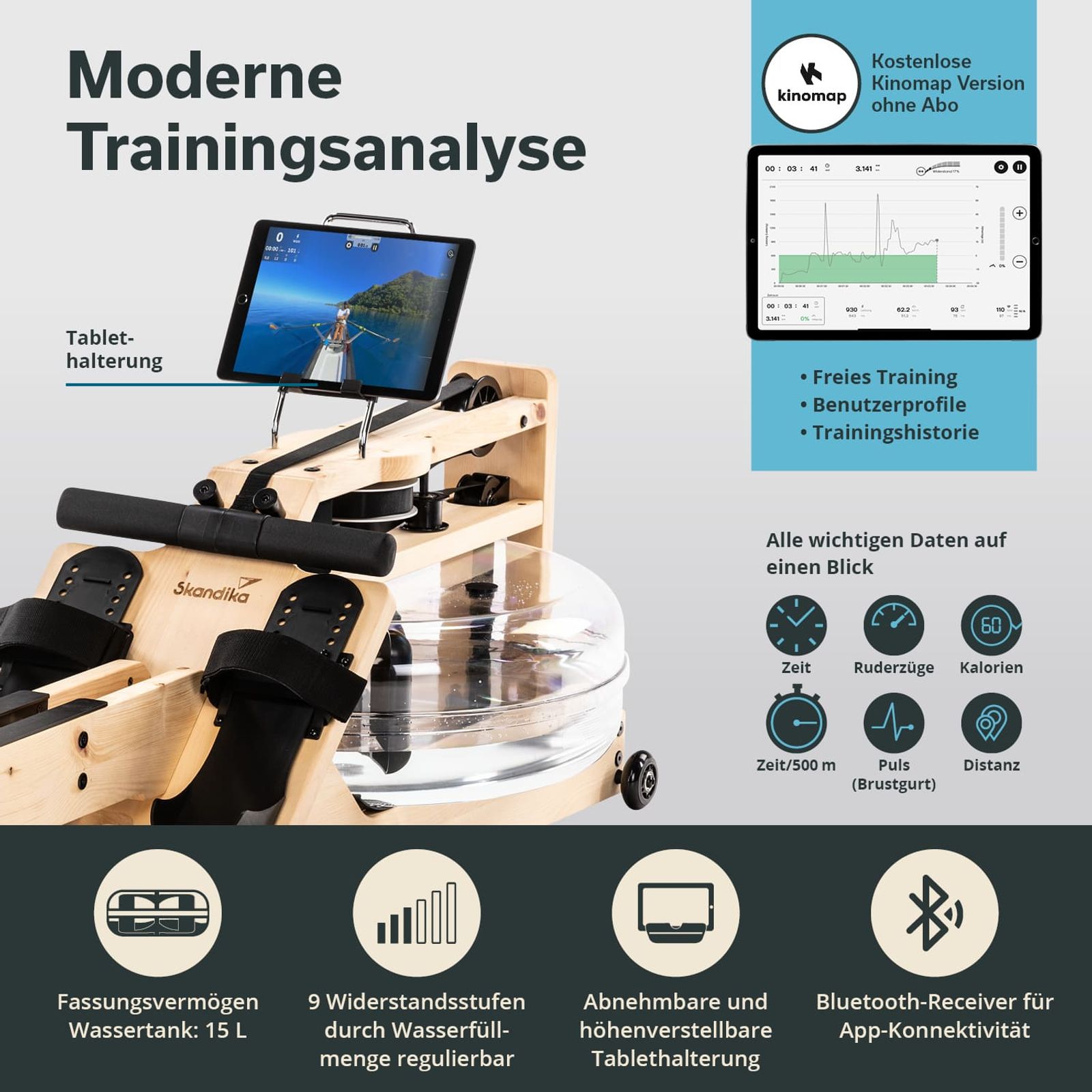 Die kostenlose Skandika Training Data App für iOS und Android verwandelt das eigene Smartphone oder Tablet in einen exklusiven Trainingscomputer. Die intuitiv bedienbare App zeigt alle relevanten Daten wie Zeit, Zeit/500 m, Distanz, Ruderzüge, Ruderzüge/Min und Geschwindigkeit übersichtlich auf einem Blick.
