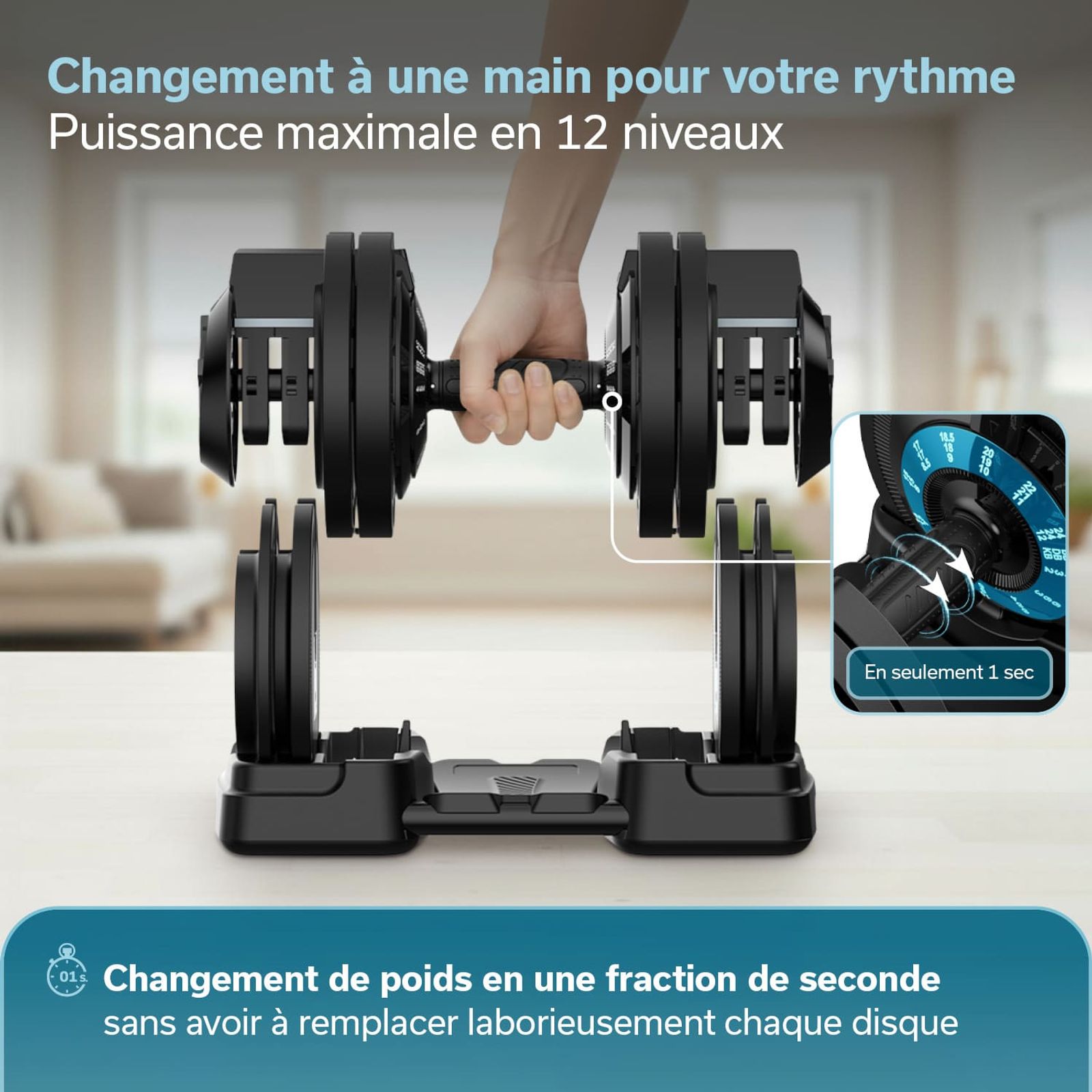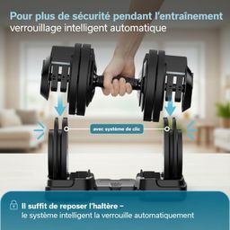 - Système innovant de changement rapide avec technologie d'auto-verrouillage pour un changement de poids en quelques secondes
