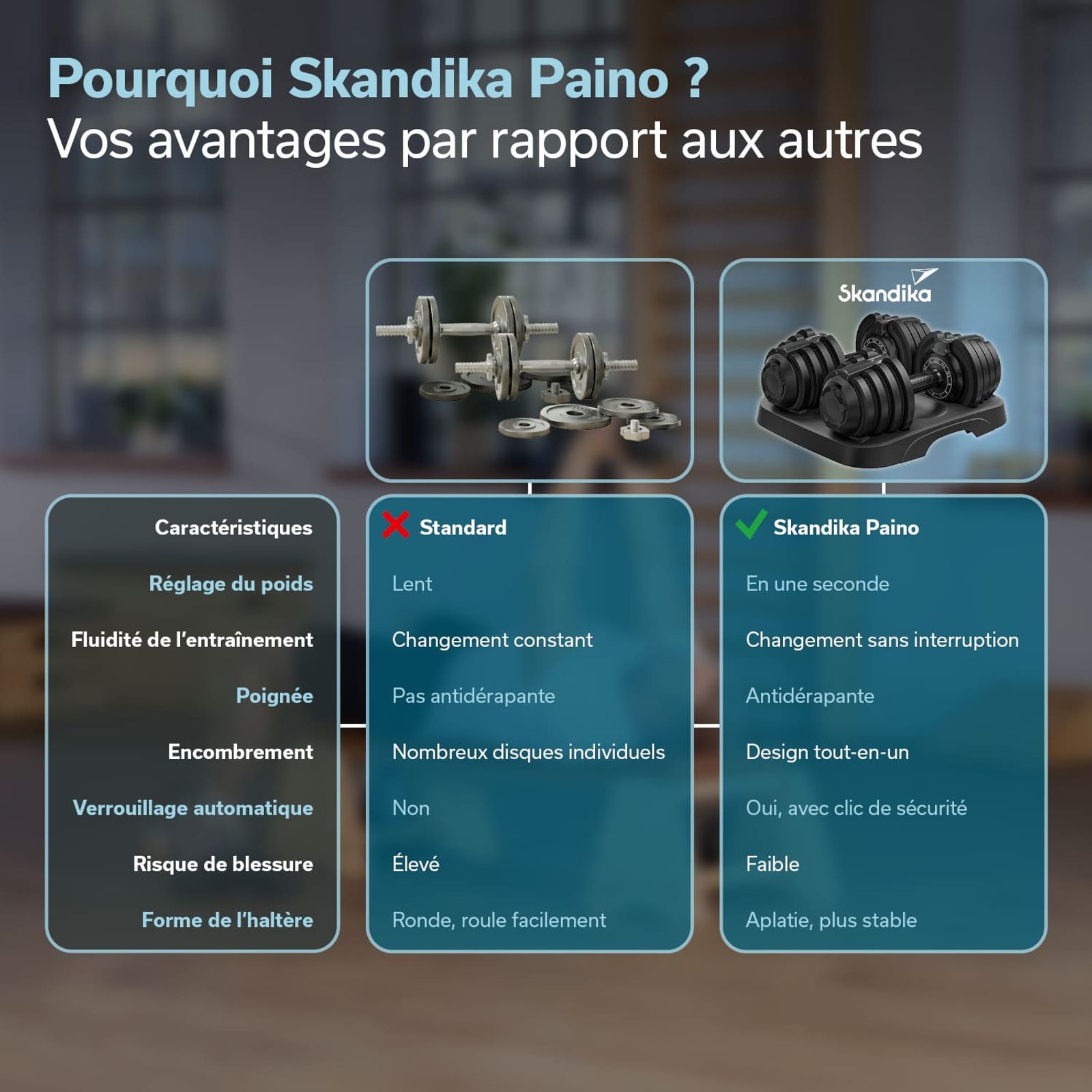 • Idéal pour des exercices variés : biceps, triceps, épaules, poitrine, dos et plus encore
