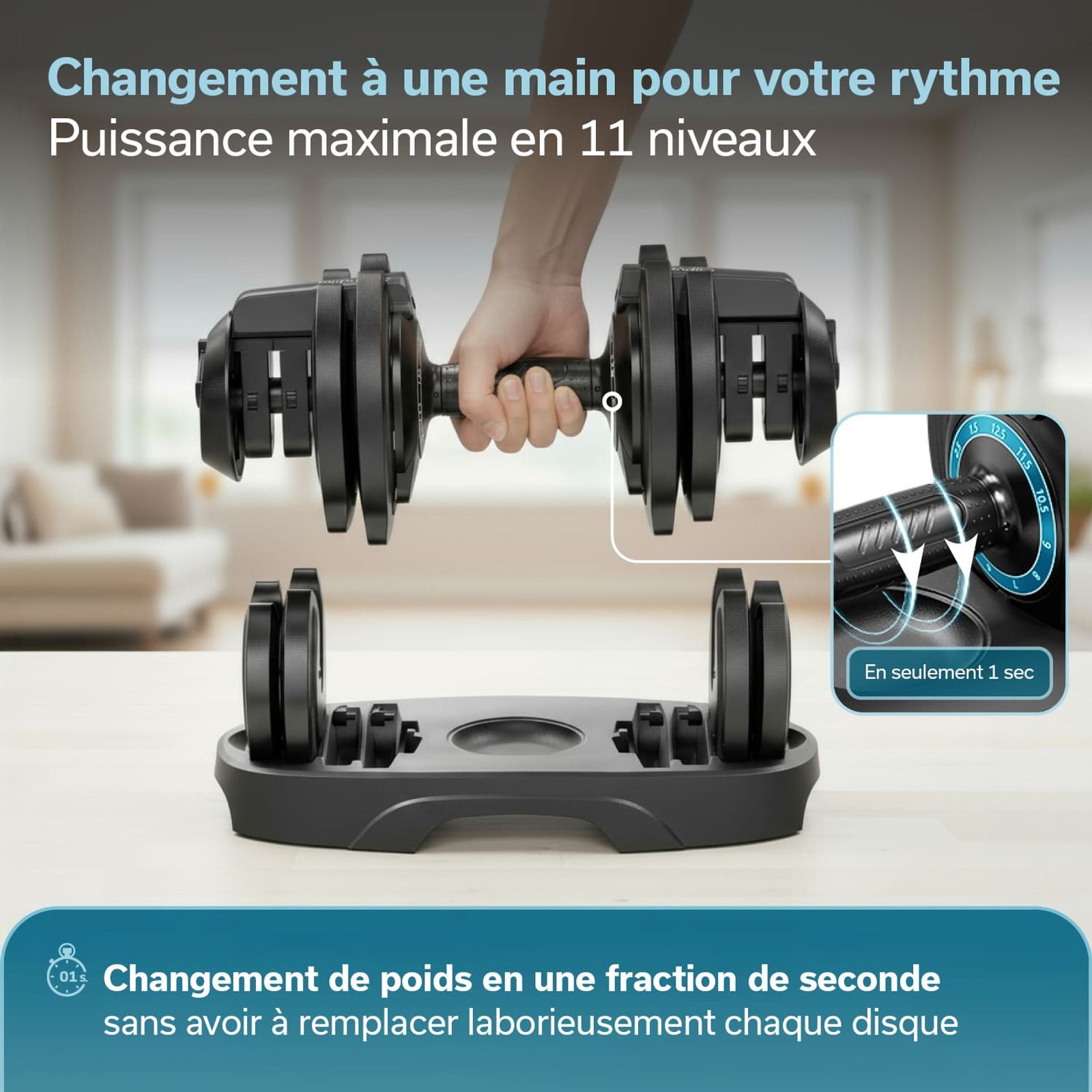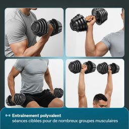 Haltères réglables avec 11 niveaux de poids différents