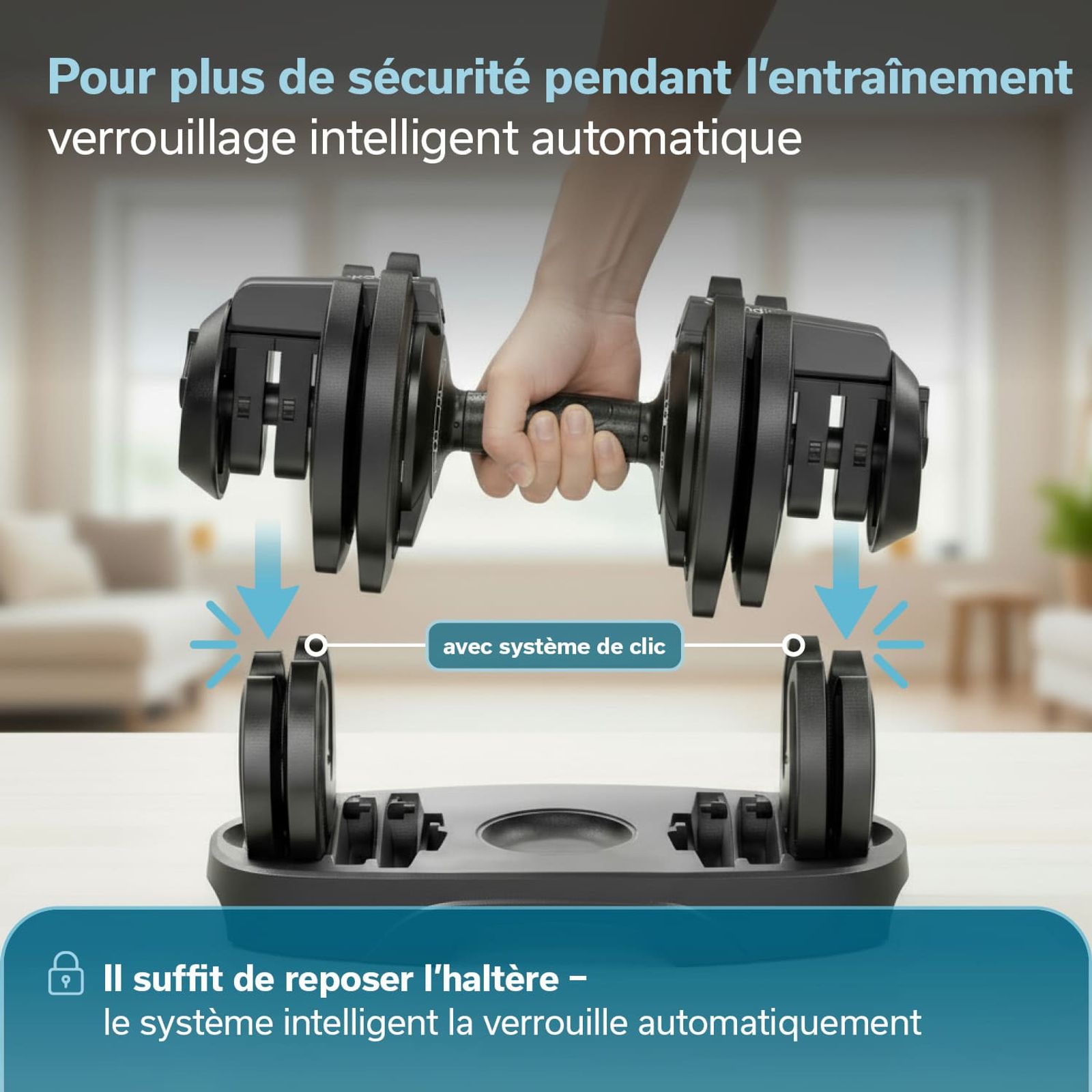 • Système innovant de changement rapide avec technologie d'auto-verrouillage pour un changement de poids en quelques secondes